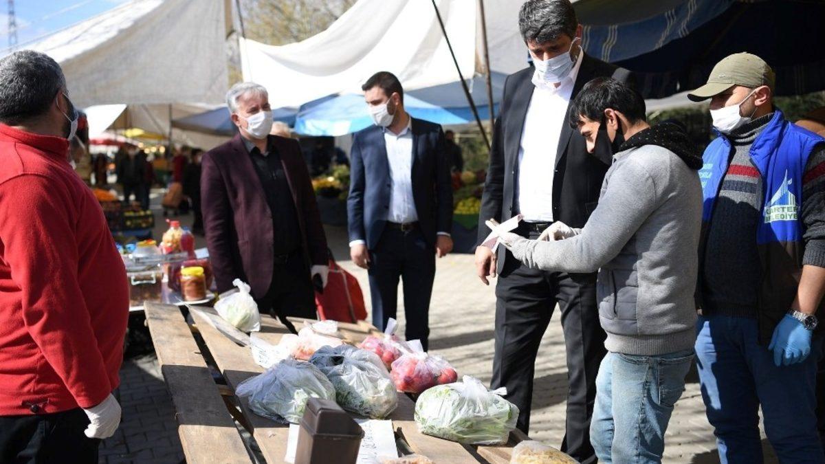 Kartepe Ataveler Mahallesi’nde kurulan semt pazarında tezgah açan esnaflar ihtiyaç sahipleri için ücretsiz sebze-meyve tezgahı kurdular.