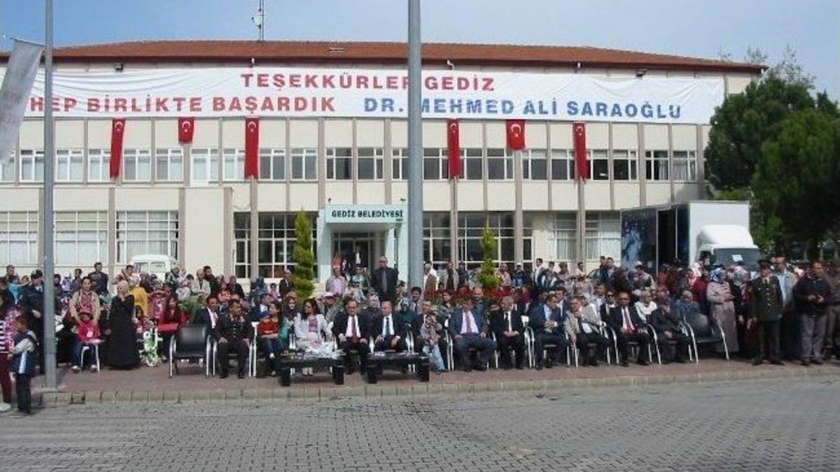 23 Nisan Ulusal Egemenlik ve Çocuk Bayramı’nın 94. Yılı Kütahya’nın Gediz İlçesi’nde törenlerle kutlandı.Bu gün saat 09.15’te Gediz Kaymakamlığı önünde Atatürk Anıtına çelenk sunumu ile başlayan 23 Nisan Ulusal Egemenlik ve Çocuk Bayramı kutlamaları, saat 10.00’da Cumhuriyet Caddesindeki Gediz Belediyesi önünde yapılan kutlama töreniyle devam etti.Törene İlçe Kaymakamı Mehmet Yılmaz, Garnizon Komutanı Jandarma Yüzbaşı Erdoğan Erik ve Belediye Başkanı Mehmed Ali Saraoğlu, Gediz Meslek Yüksekokulu Müdürü Doç. Dr. Hamdi Melih Saraoğlu, İlçe Emniyet Müdürü Haci Çağlar, İlçe Milli Eğitim Müdürü İsmail Aksoy, Daire Amirleri ve kalabalık halk topluluğu katıldı.Okulların tören geçişinin ardından Cumhuriyetimizin Kurucusu Büyük Önder Mustafa Kemal Atatürk, silah arkadaşları, ebediyete intikal etmiş olan Türk Büyükleri ve tüm Şehitlerimiz için bir dakikalık Saygı Duruşu yapıldı ve hep birlikte okunan İstiklal Marşı eşliğinde Şanlı Türk Bayrağı göndere çekildi.Kutlamalar; Mehmet Akif Ersoy İlkokulu 4/A sınıfı öğrencisi Gamze Kandemir’in günün anlam ve önemini belirten konuşması, İlçe Milli Eğitim Müdürü İsmail Aksoy'un 23 Nisan Ulusal Egemenlik Haftası ile ilgili kapsamlı konuşması ile devam etti.Konuşmaların ardından öğrenciler tarafından yapılan çeşitli gösteriler ve yarışmalar tüm vatandaşları coşturdu.23 Nisan'ın anlam ve önemini belirten şiirlerin okunması ile tören sona erdi.
