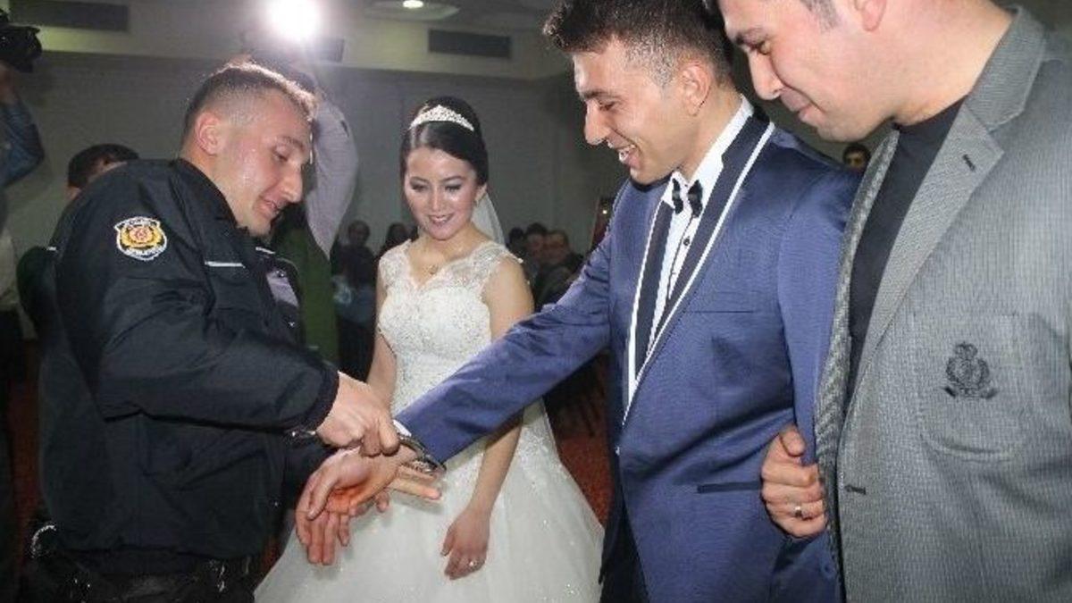 Fethiye Emniyet Müdürlüğü çevik Kuvvet Biriminde görev yapan polis memuru Kenan Hazır’ın gelin Damla Sönmez ile düğün töreninde ilginç bir olay yaşandı. Gelin ve damadın birlikte düğün pastasını kesmelerinin ardından aniden piste gelen polis görevlileri çiftle kısa süreli konuştuktan sonra damat ve geline kelepçe takınca salonda adeta büyük bir şaşkınlık yaşandı.Damadın polis memuru olduğu ve arkadaşlarının şaka yaptığının anlaşılmasıyla davetliler derin bir oh çektiler. Gelin ve damat birbirlerine kelepçelenmiş vaziyette piste fırlayıp meslektaşlarıyla birlikte bol bol oynarken düğündeki eğlence doruğa çıktı. Bir otelde düzenlenen eğlenceli düğünde, polis memuru Kenan Hazır ile gelin Damla Sönmez arkadaşları ve yakınlarıyla pisti hiç boş bırakmayıp bol bol oynadılar. Düğün törenine Fethiye Emniyet Müdür Vekili Hüseyin Güleç, birim amirleri, emniyet personeli ve çok sayıda davetli katıldı. Hareketli müzik eşliğinde geç saatlere kadar eğlenen davetliler genç çifti yalnız bırakmazken Nurgül- Şeref Sönmez çifti ile Emine- Habib Hazır çifti de davetliler ile yakından ilgilendiler.