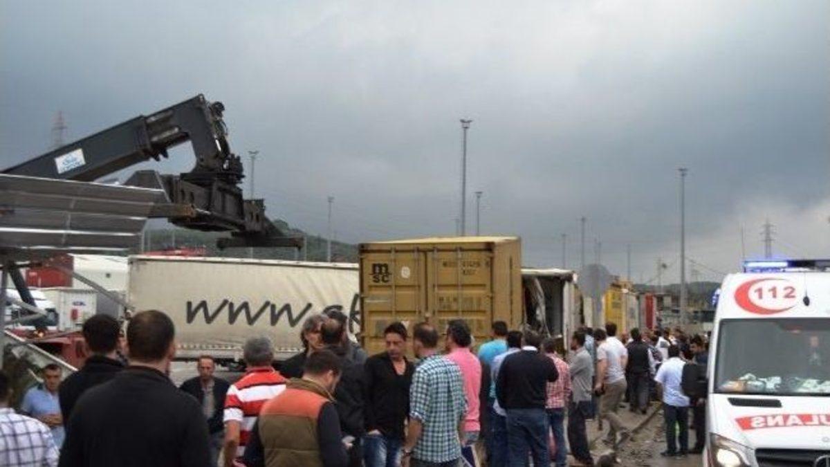 Bursa’nın Gemlik ilçesinde Gümrük ve Liman İşletmeleri bahçesine giren TIR, ortalığı savaş alanına çevirdi. 4 kişiye çarpan TIR, bahçedeki dorselere çarparak durabildi. Kazada 2 kişi ölürken, 3 kişi de yaralandı.Kaza, akşam 18.30 sıralarında meydana geldi. Edinilen bilgiye göre, Necatı Uçtu idaresindeki 01 R 2188 plakalı TIR, Gemlik Gümrük Müdürlüğü’nün karşısında bulunan çay ocağı ve özel işletmelerin bulunduğu binanın bahçesine daldı. Bahçedeki kapalı çay ocağını dağıtan TIR, Gümrük binası önünde telefon satan Şehmuz Günel, Hakan Özaydın, Orhan Hacıoğlu ve Fatih Akdeniz’e de çarptı. TIR, park halindeki 34 EB 5661 plakalı dorseye çarparak durabildi. Kazada yaralanan Hakan Özaydın, Orhan Hacıoğlu ve Fatih Akdeniz 112 Acil Servis ambulansı ile Gemlik Devlet Hastanesi’ne kaldırılırken, ağır yaralanan Şehmuz Günel ise olay yerinde hayatını kaybetti. TIR’ın dorsesine sıkışan sürücü Necati Uçtu’nun cenazesi de, itfaiye arama kurtarma ekiplerince çıkarıldı. Gemlik Nöbetçi Cumhuriyet Savcısı’nın olay yerinde yaptığı incelemenin ardından cenazeler Gemlik Muammer Ağım Devlet Hastanesi’ne, buradan da kesin ölüm sebeplerinin tespiti için Bursa Adli Kurumu’na kaldırıldı.Kazayla ilgili çevrede bulunanların ifadesine başvurulurken, soruşturma devam ediyor.