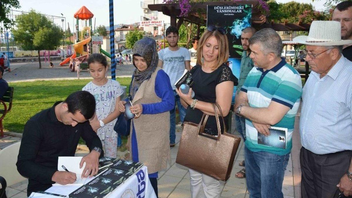 Muğla’nın Ortaca ilçesinde, yazar Anıl Şahin’in “Düşlerimdeki Yansımalar” isimli ilk şiir kitabı için imza günü düzenlendi.Genç yazar Şahin, imza gününde kitabın satışından elde edilen gelirin bir kısmını öğrencisi olduğu Uşak Üniversitesi Sosyal Yardımlaşma Kulübüne bağışlayacağını açıkladı.Ortaca Kent Konseyi’nin organizasyonu ile Kültür Park’ta yapılan imza gününde Anıl Şahin, felsefe öğretmeni Duygu Güneş ile birlikte kitabının yazım sürecini anlattığı söyleşi gerçekleştirdi.Söyleşinin ardından, Uşak Üniversitesi Makine Mühendisliği bölümü öğrencisi Anıl Şahin, okurları için kitaplarını imzaladı.9’uncu sınıfta şiir yazmaya başladığını anlatan Anıl Şahin, kitabının çıkmasının ardından çevresinden çok büyük destek aldığını dile getirerek, “Beni destekleyen, kitabımı alıp okuyan herkese çok teşekkür ediyorum” diye konuştu.- 100 kitabın geliri sosyal yardımlaşma kulübüneKitap çıkarmaya karar verdiğinde bu işe ayıracak yeterli parası olmadığını aktaran Şahin, “Ortaca İlçe Milli Eğitim Şube Müdürü Ekrem Gürhan hocamız sağ olsun. Katkı yaptı. Bende o katkıları aldığım için kitabımı bastırabildim. Ailemde çok yardımcı oldu. Bu katkıyı aldığım için bende 100 adet kitabımın satışından elde edeceğim geliri üniversitede sosyal yardımlaşma kulübüne vermeyi düşünüyorum. Satıştan elde edeceğim geliri sosyal yardımlaşma kulübüne vermekten büyük mutluluk duyacağım” dedi.Muğla İl Milli Eğitim Müdürlüğünün genç yetenekleri keşfetmek ve yazmaya teşvik etmek için il genelinde başlattığı Genç Kalemler Projesi öğrencisi Anıl Şahin’in ilk kitabı “Düşlerimdeki Yansımalar” geçtiğimiz ay okuyucu ile buluşmuştu.