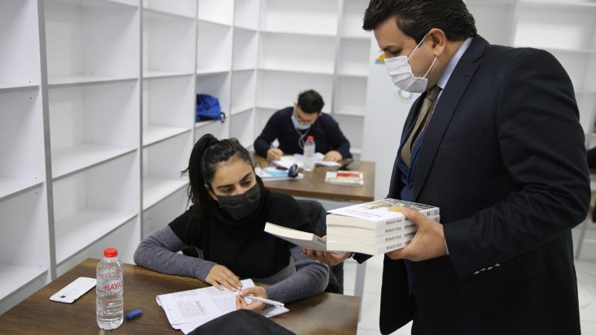 Kültür ve Sosyal İşler Müdürlüğü, İstiklal Marşının kabulünün yıl dönümü dolayısıyla Recep Tayyip Erdoğan Kültür Merkezindeki kütüphanede ders çalışan gençlere kitap dağıtımı gerçekleştirdi. Doç. Dr. Mahmut Öztürk’ün düzenlediği Milletin Sesi Mehmed Akif kitabını teslim alan gençlere, müdürlük görevlileri kitaplarını teslim etti. Üniversite hazırlık kurslarından faydalanan gençlere de dağıtımı gerçekleştirilecek olan kitapta, Milli Şairin eserleriyle ilgili bilgiler veriyor.