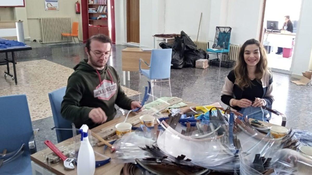 Gençlik Merkezinde üretilen siperler geciktirilmeden sağlık çalışanlarına ve emniyet güçlerine dağıtılıyor.