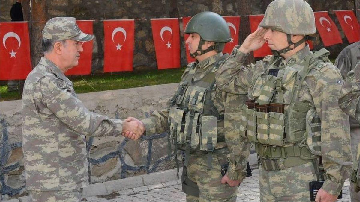 ANKARA (İHA) – Genelkurmay Başkanı Orgeneral Hulusi Akar, Hakkari’nin Yüksekova ve Şemdinli bölgelerinde bulunan birlik, karakol ve üs bölgelerinde inceleme ve denetlemelerde bulundu.Genelkurmay Başkanı Orgeneral Hulusi Akar, beraberinde Kara Kuvvetleri Komutanı Orgeneral Yaşar Güler, Deniz Kuvvetleri Komutanı Koramiral Adnan Özbal ve Hava Kuvvetleri Komutanı Orgeneral Hasan Küçükakyüz ile birlikte Hakkari’nin Yüksekova ve Şemdinli bölgelerinde bulunan birlik, karakol ve üs bölgelerinde inceleme ve denetlemelerde bulundu.Bu kapsamda Orgeneral Akar ve beraberindeki heyet, Hakkari/Şemdinli kırsalında 2 Kasım 2017 tarihinde meydana gelen ve 8 personelin şehit olduğu hain saldırıyla ilgili olarak bölgede incelemelerde bulundu. Orgeneral Akar, şehit olan 6 Türk Silahlı Kuvvetleri personelinin görev yaptığı Büyüktepe Hudut Karakolunu ziyaret etti ardından Toklu köyüne giderek 2 güvenlik korucusunun ailelerine ve köy halkına taziyede bulundu.