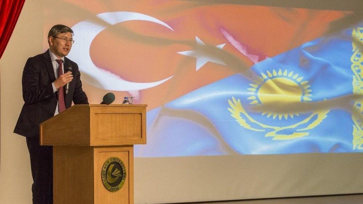 Giresun Üniversitesi Uluslararası Kültür ve Sanat Topluluğu tarafından organize edilen “Kazakistan’ın Bağımsızlığının 26. Yıldönümü” kutlaması Kazakistan Ankara Büyükelçisi Abdal Saparbekuly’ın katılımıyla Güre yerleşkesinde kutlandı.Halk oyunları, Kazakistan tanıtım filmi ve müzik dinletisi ile başlayan programın açılış konuşmasını yapan Türkçe ve Yabancı Dil Uygulama ve Araştırma Merkezi (TÖMER) Müdürü Prof. Dr. Nursulu Çetin, iki ülkenin, aralarındaki binlerce kilometreye rağmen güçlü bir kardeşlik bağını paylaştıklarını söyledi. Kazakistan’ın 1991 yılında 16 Aralık günü bağımsızlığını ilan ettiğini ve iki saat gibi kısa bir süre içerisinde Türkiye Cumhuriyeti’nin bu bağımsızlığı tanıdığını belirten Çetin, “Türkiye her zaman Kazakistan’ın yanında oldu ve desteğini hiçbir zaman esirgemedi” dedi.“Dost ve kardeş Kazakistan Cumhuriyeti’nin 26. Bağımsızlık Yıl Dönümünü üniversitemizde kutlamaktan onur duyuyorum” diyerek konuşmasına başlayan GRÜ Rektörü Prof. Dr. Cevdet Coşkun, “Avrasya’nın kalbinde yer alan Kazakistan, bugün bağımsızlığının 26. yılını kutlamakta olup Sayın Cumhurbaşkanımız Recep Tayyip Erdoğan’ın tabiriyle, Türk Dünyasının Aksakalı olan bilge Nursultan Nazarbayev’in liderliğinde Asya’nın parlayan yıldızına dönüşmüştür. Sayın Nazarbayev’in özellikle 15 Temmuz darbe girişiminin hemen ardından Türkiye’ye gelen ilk lider olarak Türk halkının yanında oldukları mesajını vermesi Türkiye için çok anlamlı ve önemlidir” diye konuştu.Program için Ankara’dan gelen Kazakistan Büyükelçisi Abdal Saparbekuly ise, dönemin Cumhurbaşkanı Sayın Turgut Özal’ın Nursultan Nazarbayev’i telefonla arayarak Kazakistan’ı tanıdıklarını söyleyen ilk devlet olduklarını ve bunun da kendileri için büyük önem taşıdığını hatırlattı. Kazakistanlı öğrencilerin hazırladığı bağımsızlık günü programının kendisini duygulandırdığını söyleyen Saparbekuly, “Kazakistan’ın bağımsızlığını kazandıktan sonra yurt dışında okuyan ilk kazak öğrencilerden biriyim ve Türkiye’de okuma şansı buldum. Yıllar önce bu ülkede, diğer arkadaşlarımızla birlikte kardeşlik ortamında yaşadık. Türkiye’ye geldiğimiz o dönemlerde hayat şartları çok zordu. Enflasyonun çok yüksek olduğu, ekonomik şartların çok zor olduğu dönemlerdi. Buna rağmen iyi eğitim almamız için Türk Devleti bize destek verdi, imkanlar sundu” dedi.Protokol konuşmalarından sonra sahne alan Kazak öğrenciler, dans, halk oyunları gösterisi, şarkı ve şiir dinletileriyle misafirlere keyifli dakikalar yaşattılar. Kazakistanlı ünlü Dombracı Yeljan Arkabayev’in sergilediği performansın ardından üniversitedeki uluslararası öğrencilerin Anayurt Marşı’nı okumalarıyla devam eden program, plaket töreniyle sona erdi.