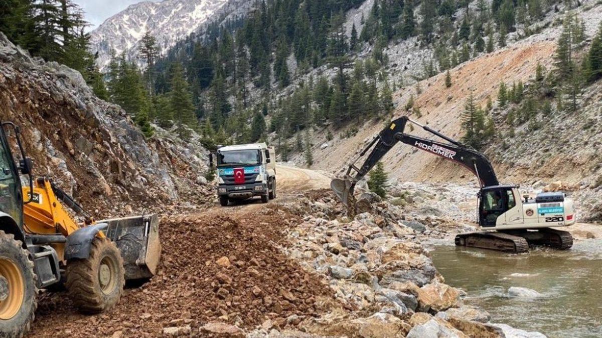 Alanya Belediyesi ekipleri, kar yağışı ve heyelan nedeniyle kapanan Gökbel ve Çökele yayla yolunu trafiğe açtı.