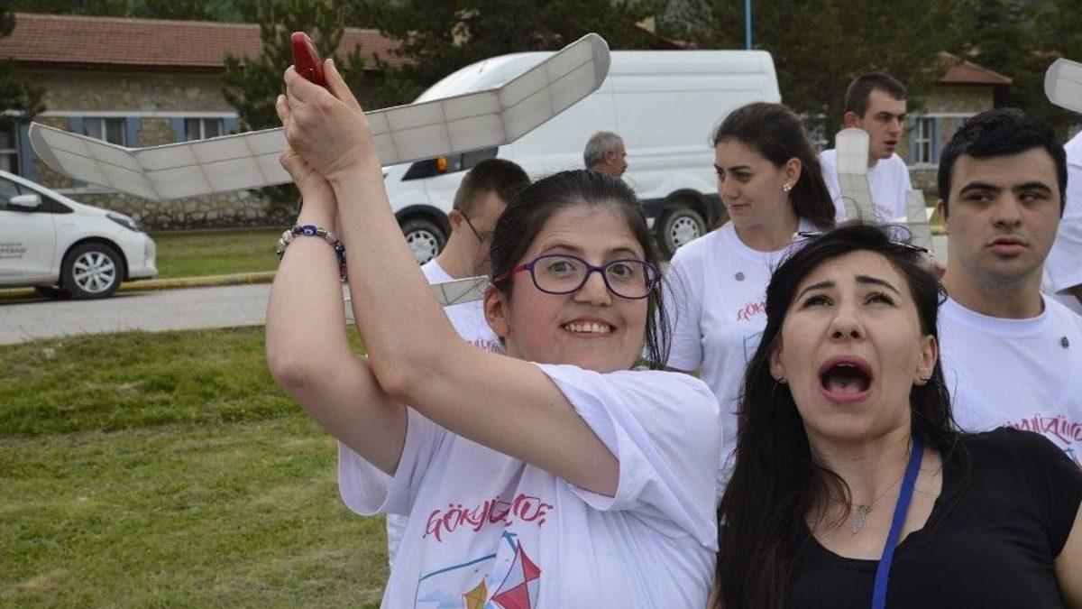 Tepebaşı Belediyesi tarafından “Gökyüzünde Engel Yok 2” sloganı ile düzenlenen Model Uçak Başlangıç Kursu’nu başarı ile tamamlayan zihinsel yetersizliği bulunan bireyler, sertifikalarını düzenlenen Model Uçak Festivali programı ile aldı.Tepebaşı Belediyesi sosyal sorumluluk projeleri kapsamında, Engelliler Koordinasyon Merkezi ve Türk Hava Kurumu işbirliğiyle düzenlenen Model Uçak Başlangıç Kursu’na 17 özel öğrenci katılarak eğitim aldı. Türk Hava Kurumu (THK) İnönü Havacılık Eğitim Merkezi’nde düzenlenen sertifika törenine, Tepebaşı Belediye Başkanı Dt. Ahmet Ataç, THK Eskişehir Şube Başkanı Nevzat Yalçın, THK İnönü Türkkuşu Okulu Başkanı Albay Seyit Yaylacı, eğitmenler, öğrenciler ve aileleri katıldı.Engelli bireylerin yoğun sevgisi ile karşıladığı Tepebaşı Belediye Başkanı Dt. Ahmet Ata,ç törende bir konuşma yaparak, “Atatürk’ün ne kadar ileri görüşlü olduğunu bu tesise geldiğimizde çok daha iyi anlıyoruz. Eğer çocuklarımız mutlu olursa, anne babaları, bizler ve bütün toplum mutlu olur. Tepebaşı Belediyesi’nin engelli bireyler için çalışmaları oldukça iyi. Bu çalışmalar sayesinde engelliler, birey oluyorlar. Anne ve babaları nefes alıyorlar ve toplum olarak mutlu oluyoruz. Bunun devamı için gereken bütün gayretleri göstermeye devam edeceğiz. Bu programın devam etmesini ve bu tesisin ilelebet yaşamasını diliyorum” ifadelerini kullandı.THK Şube Başkanı Nevzat Yalçın ise “Gördüğünüz gibi bu eğitim merkezi, tamamen sizlerin yardımlarıyla, devlet katkısı olmadan, halkımızın vermiş olduğu destekle oluşmuştur. Her yıl gençlerimiz burada havacılık eğitimi almaktadır. Türkiye’de ne kadar havacı varsa hepsi burada yetişmiştir. Bu gibi etkinliklerin devam etmesini diliyorum” dedi.Sertifika alan öğrencileri tebrik eden THK İnönü Türkkuşu Okulu Başkanı Albay Seyit Yaylacı da “Çok güzel bir gün bizim için. Bu güzel etkinlikte, kursta emeği geçenlere teşekkür ediyorum. Özellikle model uçak sertifikası takdimi olacak ve burada bir gösteri olacak. Sertifika alacak çocuklarımızı tebrik ediyorum” şeklinde konuştu.Model Uçak Rehber Öğretmeni Gülnaz Tunç ise 17 öğrenciyle çalışmalara başladıkları bilgisini verdi ve “Bugün sertifikalarını almaya hak kazandılar. Hepsini tebrik ederek ‘İyi ki varsınız’ diyorum. Tepebaşı Belediyesi’nin meleklerinin kanatları oldukları İçin Türk Hava Kurumu’na teşekkür ederim. Bizden sevgisini esirgemeyen Ahmet Başkan’a da teşekkür ediyorum” dedi.Konuşmaların ardından 17 öğrenciye sertifikaları takdim edildi ve öğrenciler tarafından model uçak atış gösterisi gerçekleştirildi. Daha sonra Başkan Ataç, planöre binerek İnönü semalarına yükseldi.Program gösteri uçuşlarının ardından zihinsel yetersizliği bulunan bireylerin dansları ile devam etti. Başkan Ataç, öğrencilerle birlikte dans ederek onların mutluluklarına ortak oldu. Programda son olarak gerçekleştirilen karaoke şov ise herkesten büyük alkış aldı. Zihinsel yetersizliği bulunan bireyler, fantezi, Türk Halk Müziği, pop müzik gibi türlerin yanı sıra rap müzik bile yaparak, büyük beğeni aldı.