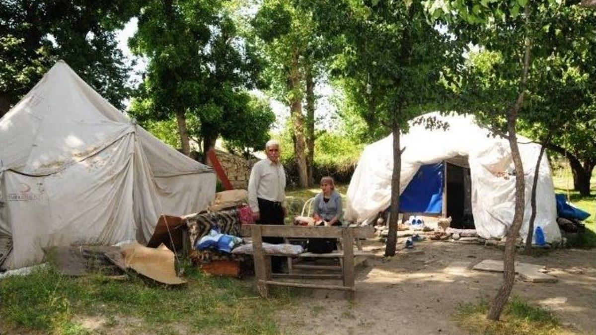 Van’da 2011 yılında yaşanan depremde kiracı olarak oturduğu evin yıkılması sonucu 6 nüfuslu Güler ailesi maddi sıkıntılardan dolayı 4 yıldır çadırda yaşamını sürdürüyor.Van’ın İpekyolu ilçesine bağlı Halilağa Mahallesi’nde 20 yıldır oturduğu evin depremde yıkılması sonrası 6 nüfusu ile birlikte çadırda yaşamını ikamet ettirmeye çalışan Aziz Güler (65) yardım eli bekliyor. Yıllarca bekçilik yaparak geçimini sağlayan Güler, kalp ameliyatı olduktan sonra 4 yıldır sağlıksız ortamlarda yaz kış demeden çocukları ile birlikte yaşıyor. 2 çocuğu lisede okurken, büyük kızının da üniversiteye hazırlanmaya çalıştığını belirten Güler, maddi imkansızlıklardan dolayı düzgün bir eğitim alamamalarından yakındı. Kalp ameliyatı olduktan sonra çalışamadığını, kolu kanadının kırıldığını anlatan Güler, iki çadır kurduğunu bunlardan birisinde yaşadıklarını, diğerinde ise elbiseleri başta olmak üzere ev ihtiyaçlarının bulunduğunu kaydetti. Kiracılar için çekilen kuralarda konutların birinin de kendisine çıktığını anlatan Güler, “Bir hafta boyunca ismim internet sayfalarında yer aldı. Ama bir hafta sonra ne ismim bulundu ne de bana çıkan konuttan haberim oldu. Şuan ailemle perişan bir haldeyim. Başkasının bahçesinde kurduğum çadırlarla yaşam mücadelesi veriyorum. Herhangi bir gelirim de yok. Olmuş olsaydı kiralık bir yere geçerdim. Ben devletimizden bize sahip çıkmasını bekliyorum. Yardımsever insanlarımızın bize de bir el atmalarını bekliyorum. 4 yıl boyunca kar kış demeden gece gündüz bu çadırın içerisinde yaşıyoruz. Çocuklarımın ikisi liseye gidiyor, bir kızımda üniversiteye hazırlanıyor. Durumumuz ortada nasıl sürecek bilmiyorum” dedi.Üniversiteye hazırlanan kızı Rukiye Güler ise, zor şartlarda yaşadıklarını belirterek, “Bir üniversiteye girebilmek için durmadan çalışıyorum. Ama çadırda hazırlanmak ne kadar zor bilemezsiniz. Bu konuda bizlere yardım elinin uzatılmasını bekliyoruz” dedi.