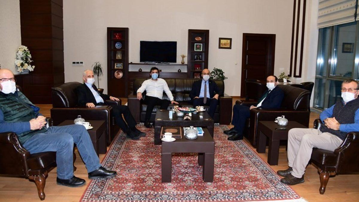 Gümüşhane Üniversitesi Rektörü Prof. Dr. Halil İbrahim Zeybek, beraberindeki heyet ile ETÜ Rektörü Prof. Dr. Bülent Çakmak’ı makamında ziyaret etti.