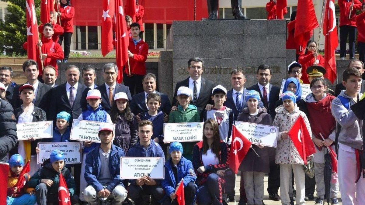 19 Mayıs Atatürk’ü Anma, Gençlik ve Spor Bayramı Gümüşhane’de düzenlenen bir dizi etkinlikle kutlandı. Yağmur nedeniyle kısaltılan program renkli görüntülere sahne oldu.Gençlik Hizmetleri ve Spor İl Müdürlüğü önünden Hükümet Konağı önündeki Atatürk Anıtına kadar gerçekleştirilen yürüyüşle başlayan kutlama programında daha sonra Atatürk Anıtına çelenk sunuldu, saygı duruşunda bulunularak İstiklal Marşı okundu.15 Temmuz Zafer Meydanında gerçekleştirilen kutlama programı ise yağmur yağışı nedeniyle kısaltılarak gerçekleştirildi.İstiklal Marşı’nın okunmasının ardından gençlik lideri Onur Yayla’nın Vali Okay Memiş’e bayrak ve buket takdimiyle başlayan programda Gençlik Hizmetleri ve Spor İl Müdürü İsrafil Aslan, günün anlam ve önemiyle ilgili bir konuşma gerçekleştirdi.Bugünün Mustafa Kemal’in Samsun’da tutuşturduğu kurtuluş meşalesinin Anadolu’da elden ele, gönülden gönüle dolaşmasının 98.yıldönümü olduğunu kaydeden Aslan, “Milletimizin tüm onur ve asaletiyle Mustafa Kemal Atatürk’ün rehberliğinde tarih sahnesinde bir defa daha şaha kalkışının başlangıcıdır 19 Mayıs” dedi.19 Mayıs’ın sadece Türk milli kurtuluş hareketinin başlangıcı değil, yeni Türk devletinin de çağdaş değerlerle millet ailesi içerisinde yerini almasının adı olduğunu kaydeden Aslan, "Türk genci, Türk istiklali ve Turü Cumhuriyeti’nin yılmaz bekçisi, bugün ve yarınların tek ve en büyük güvencesidir. Binlerce şehit vererek sıkıntı ve yokluklar içinde büyük özverilerle kurulan Türkiye Cumhuriyeti sizlere emanettir gençler. Bu değerli emaneti yaşatmak ve sonsuza kadar korumak, gelecek kuşaklara en iyi şekilde aktarmak en başta gelen görev ve sorumluluğumuz olmalıdır" diye konuştu.Gençlik haftası nedeniyle düzenlenen “ecdada mektup” yarışmasında birinci olan mektubun okunmasının ardından Gümüşhane’nin yetiştirdiği ulusal ve uluslararası başarılar elde eden sporculara ödüllerinin verilmesinin ardından Gençlik Hizmetleri ve Spor İl Müdürlüğü "Hane de dans topluluğu" tarafından halk oyunları gösterileri gerçekleştirildi.Gençlik Merkezi üyelerinin sahnelediği 19 Mayıs konulu oratoryonun icra edilmesinin ardından bu kez Gümüşhane Üniversitesi Halk Dansları gösterisini gerçekleştirdi.Törenlere katılan Gümüşhaneli 82 yaşındaki şair Hıfzı Kenan Çetiner’in de kürsüden iki şiirini seslendirdiği programın son bölümünde protokol üyeleri spor gösterileri kapsamında ok attı.Gençlik Merkezi kültür-sanat faaliyetleri sergisinin gezilmesiyle program sona erdi.Programlara Vali Okay Memiş, Belediye Başkanı Ercan Çimen, Cumhuriyet Başsavcısı Bozan Çevik, İl Jandarma Komutan Vekili Yarbay Faruk Akıncı, Gençlik Hizmetleri ve Spor İl Müdürü İsrafil Aslan, kurum müdürleri öğrenci ve vatandaşlar katıldı.