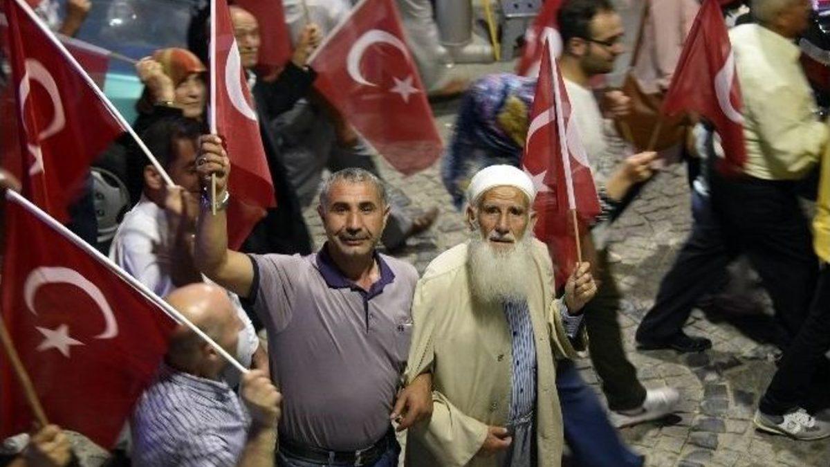 Fethullahçı Terör Örgütü’nün (FETÖ) 15 Temmuz’da gerçekleştirdiği darbe girişiminin ardından Gümüşhane’de 5 gündür sürdürülen Demokrasi Nöbeti kapsamında geniş katılımlı ‘Demokrasi Yürüyüşü’ düzenlendi.Gümüşhane Belediye tarafından düzenlenen yürüyüşe Vali Okay Memiş, Belediye Başkanı Ercan Çimen, AK Parti İl Başkanı Celalettin Köse, sivil toplum kuruluşlarının temsilcileri ve binlerce vatandaş katıldı.Atatürk Caddesinde toplanan vatandaşlar ellerinde ki bayraklarla Zafer Meydanı, Hasanbey Caddesi ve Cumhuriyet Caddesi üzerinden Fatih Parkına kadar marşlar ve salavatlar eşliğinde “Her Türk asker doğar”, “Vatan sana canım feda”, “Türkiye burada, darbeciler nerede”, "Recep Tayyip Erdoğan", "Dik dur, eğilme, bu millet seninle", "İdam isteriz" sloganları atarak yürüdü.Yürüyüş boyunca akın akın katılımların olduğu etkinlikte vatandaşlar evlerinin balkonlarından salladıkları Türk bayraklarıyla yürüyüşe destek olurken, 5 binden fazla kişinin katıldığı yürüyüş Gümüşhane’de en kalabalık yürüyüşlerden birisi olarak tarihe geçti.Yürüyüşün sonunda Belediye Başkanlığı önünde kurulan platformda 5 gündür gerçekleştirilen Demokrasi Nöbeti etkinliği icra edildi. Saygı duruşunda bulunulması ve İstiklal Marşı’nın okunmasıyla başlayan programda Kur’an tilavetinin ardından Müftü Yardımcısı Hüseyin Hacıfettahoğlu tarafından binlerce kişiye dua yaptırıldı.“15 Temmuz en büyük demokrasi zaferidir”Burada konuşan Vali Memiş, 15 Temmuz’da çok önemli bir krizi vatandaşların desteği ile Gümüşhanelilerin birlik ve beraberliği ile atlatıldığını söyledi. Kendisinin Siyasal Bilgiler Fakültesi mezun olduğunu ve Türkiye’nin siyasal tarihini bilen bir insan olarak Cumhuriyetin kuruluşundan bu güne kadar 15 Temmuz’da vatandaşların öncülüğünde kazanılan demokrasi zaferi kadar başka bir zafer hatırlamadığını söyledi.“Sizlerin büyük katkısı olmuştur”Vali Memiş, “Bizim bu duruşumuzda başta Sayın Cumhurbaşkanımızın sizler için tavsiyem, bizler için direktif olan talimatları en büyük gücümüz olmuştur. Sayın Başbakanımızın, hükümetimizin ve darbeye karışmamış olan başta Genelkurmay başkanımız olmak üzere tüm generallerimizin ve tüm şerefli Türk Silahlı Kuvvetleri mensuplarının, FETÖ ile alakası olmayan çok değerli emniyet mensuplarımızın, kamu personelimizin ve sizlerin çok büyük katkısı olmuştur” dedi.“Asla FETÖ’cüler gibi sahte deliller üreterek soruşturma ve kovuşturma yapmayacağız”Mücadelenin sona ermediğini dile getiren Vali Memiş, birçok soruşturma ve kovuşturmanın yürütüldüğünü belirterek, “İlimizde de buna benzer soruşturma ve kovuşturmalara şahit olacaksınız. Ancak Gümüşhane Valisi olarak sizlere şunu temin ederim ki bizler devletin hukukuna ve anayasal niteliklere sahip olan bürokratlar olarak, asla FETÖ’cüler gibi insanlar hakkında sahte deliller üreterek soruşturma ve kovuşturma yapmayacağız. Devletin böyle birşeye ne ihtiyacı ne de niyeti vardır” diye konuştu.“Darbe demek ihanet, hainlik, katillik demektir”Belediye Başkanı Ercan Çimen ise 15 Temmuz’da Allah’ın masum ve mazlumların dünya üzerindeki en büyük dayanağı olan Yüce Türk Milleti’ni zalimlerin elinden koruyup kurtardığını belirterek, “Darbe demek, ihanet, hainlik, katillik, insanlıktan çıkmak demektir. İnsanlıktan çıkanlara gerekli dersi insan olanlar vermiştir ve vermeye de devam edecektir” dedi.“Gümüşhane’de 5 gündür destan yazılıyor”Ülkenin her yerinde olduğu gibi Gümüşhane’de de 5 gündür tarih yazıldığını, destan yazıldığını ifade eden Çimen, “Milletimiz ve Gümüşhaneliler hep birlikte nöbet tutuyoruz. Bu nöbet insanlığın nöbetidir. Bu nöbet demokrasinin nöbetidir. Bu nöbet milli iradenin nöbetidir. Bu nöbet 2. Kurtuluş Zaferini kazanma nöbetidir. Bu nöbet geleceğimizin nöbetidir. Bizler ‘Ekmeksiz yaşarım ama hürriyetsiz asla’ kültürü ile yoğrulan bir neslin evlatlarıyız. Gecelerimiz uykusuz olsun ama Hürriyetsiz kalmayalım. Ekmeğimiz olmasın ama Hürriyetsiz olmayalım. Bu gerçeği gören Yüce Milletimiz; hiçbir siyasi hesap yapmadan meydanlarda toplanmış ve bir bayrak olarak zulme dur demiştir” diye konuştu.Etkinlik kapsamında 2 siyasi parti ve 22 sivil toplum örgütünün imza attığı bildiriyi ise Ensar Vakfı Başkanı Yaşar Gül okudu. Millet olarak yaşanılan darbe girişimini şiddet ve nefretle kınadıklarını kaydeden Gül, hain terör örgütü paralel yapının yurt içi ve yurt dışı uzantıları tarafından yapılan darbe girişiminin yüce Türk milletinin bağrından çıkmış ve helal süt emmiş vatansever askerler, polisler ve basiretli millet tarafından önlendiğini söyledi.Gümüşhaneli sanatçı Onur Akgül’ün sunumuyla icra edilen programda ellerindeki bayraklarla binlerce Gümüşhanelinin çalan marşlara eşlik etti. Gümüşhaneliler programın son bölümlerinde gerçekleşen yağmura rağmen demokrasi nöbetini tutmaya devam etti.