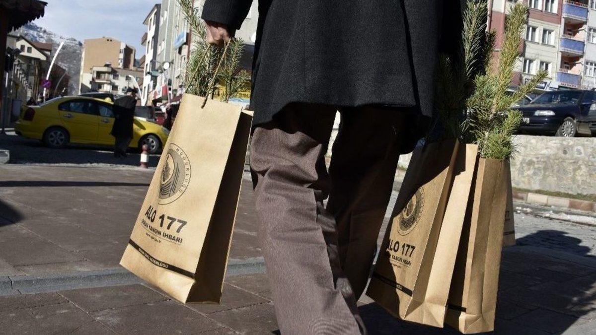 Gümüşhane Orman İşletme Müdürlüğü, yılbaşında çam fidanlarının süs için kesilmemesi amacıyla ‘Çam kesme, fidan dik’ sloganıyla vatandaşlara ücretsiz çam fidanı dağıttı.Orman ve Su İşleri Bakanlığı’nın “Yılbaşı için çam kesilmesin fidan dikilsin” seferberliği çerçevesinde gerçekleştirilen etkinlik 15 Temmuz Zafer Meydanında gerçekleştirildi.Gümüşhane Orman İşletme Müdürü Tuncay Dinç ve görevliler tarafından dağıtılan çam fidanlarına vatandaşlar yoğun ilgi gösterdi. Çam fidanlarının yılbaşı eğlencelerinde süs amaçlı kesilmemesine dikkat çekmek için gerçekleştirilen etkinlikte yüzlerce fidan dakikalar içerisinde tükendi.Duyarlılık oluşturmak ve vatandaşları bu konuda bilinçlendirmek için böyle bir program düzenlediklerini belirten Gümüşhane Orman İşletme Müdürü Tuncay Dinç, yılbaşında canlı maç ağaçlarının kesilmemesi, bunun yerine yapay çam ağaçlarının kullanılması ile temiz hava kaynağı ormanların korunmasına katkı sağlanacağını kaydetti.Gümüşhane’de 2017 yılında il merkezi, Kelkit ve Şiran ilçelerinde çam ağırlıklı olmak üzere badem, akasya, dağ akçaağacı, ahlat türlerinden toplam 436 bin fidanı toprakla buluşturduklarını ifade eden Dinç, Gümüşhane’de bu yıl 10 bin 100 dönüm yeni ormanlık alan kurulduğunu sözlerine ekledi.