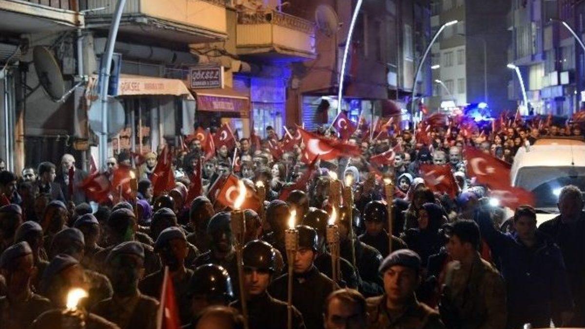 Gümüşhane’nin düşman işgalinden kurtuluşunun 98. yıldönümü kutlamaları kapsamında mevlid okutuldu ve fener alayı yürüyüşü gerçekleştirildi.Akşam namazının ardından merkez Kemaliye Camii’nde okutulan mevlidin ardından binlerce kişi Gümüşhane Belediyesi Mehteran ekibinin çaldığı marşlar eşliğinde teröre tepki gösteren sloganlar atarak yürüdü.Jandarma Komutanlığı’nın işbirliğinde gerçekleştirilen etkinlik Zafer Meydanı’ndan başladı. Binlerce kişinin katılımıyla Hasanbey Caddesi ve Cumhuriyet Caddesi istikametinde devam eden yürüyüş, Belediye Başkanlığı önündeki Fatih Parkı’nda son buldu.Vali Yücel Yavuz, Garnizon Komutanı Albay Cezayir Danışan, Belediye Başkanı Ercan Çimen, AK Parti İl Başkanı Celalettin Köse, kamu kurum müdürleri, askerler, sivil toplum örgütü temsilcileri ve yaklaşık 3 bin kişinin ellerinde Türk bayraklarıyla katıldığı yürüyüşün sonunda İl Müftüsü Ercan Aksu tarafından yaptırılan duanın ardından Fatih Parkı’nda vatandaşlara çay ve simit ikram edildi.Programın sonunda konuşan Belediye Başkanı Ercan Çimen, Gümüşhane’nin düşman işgalinden kurtuluşunun 98. yıldönümünü şehitlerin hüznü ile buruk bir şekilde kutladıklarını belirterek, “Bizlerin bu topraklarda yaşayabilmesi için canlarını feda eden aziz şehitlerimize yüce Allah’tan rahmet diliyor, gazilerimize minnetlerimizi burada bir kez daha sunuyorum. Bugün, bizler şehit ve gazilerimizin fedakarlıkları sayesinde buradayız. Atalarımızın canları uğruna savundukları bu toprakların omuzlarımıza yüklediği sorumluluğun bilincindeyiz. Onlardan emanet aldığımız vatanımızı çağdaş milletler seviyesine çıkararak bizden sonraki nesillere aktarmak zorundayız” dedi.“GÜMÜŞHANELİLER SÖZ KONUSU VATAN OLUNCA CANLARINI HER ZAMAN SEVE SEVE VERMİŞTİR”Gümüşhanelilerin bayrak, vatan ve millet konusundaki hassasiyetini kurtuluş mücadelesinde gösterdiğini, günümüzde de göstermeye devam ettiğini vurgulayan Başkan Çimen, “Gümüşhaneliler söz konusu vatan olunca canlarını her zaman seve seve feda etmiştir. Gümüşhane halkı vatanseverdir. Onun için hiçbir zaman fedakarlıktan kaçınmamıştır. Bunun en son örneğini, geçtiğimiz günlerde Güneydoğuda bölücü terör örgütüne karşı yürütülen operasyonda şehadet şerbeti içerek şehit olan teğmenimiz Recep Erdoğan’la, gazi olan özel harekat polisimiz Ufuk Ağaç’la göstermiştir” diye konuştu.“BAĞIMSIZLIK EKMEK VE SU GİBİ ZARURİ BİR İHTİYAÇTIR”Başkan Çimen, şöyle konuştu: “Yüzyıl önce bu topraklarımızda yaşananlar! Günümüzde yakın coğrafyalarımızda, Irak’ta, Suriye’de, Doğu Türkistan’da, Myanmar’da ve dünyanın birçok yerinde mazlumlara yapılmaktadır. Bunu hiçbir zaman unutmayalım. Suriye’de Bayırbucak Türkmenleri ülkemizle olan yakın akrabalık ilişkileri sebebiyle yok edilmek isteniyor. Bunu kabul etmemiz mümkün değildir. Onlara olan desteğimiz sonsuza kadar devam edecektir. Bunu Esad ve bütün dünya böyle bilsin. Etrafımızda yaşanan bu olaylar, bağımsızlığın önemini bir kez daha göstermiştir. Bağımsızlık ekmek ve su gibi zaruri bir ihtiyaçtır.”