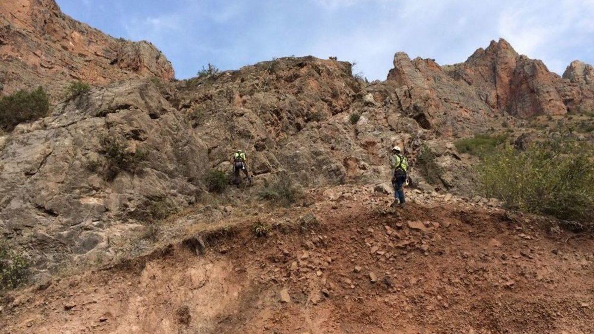 Gümüşhane köy yollarında trafik ve yaya güvenliğini tehdit eden kaya blokları İl Özel İdaresi tarafından yapılan çalışmayla temizleniyor.Geçtiğimiz haftalarda başlanan çalışmalarda sona gelinirken, Merkez ilçe ve Kürtün ilçesinde kurumda görev yapan mühendislerin belirlediği noktalarda yüklenici firma tarafından ıslah çalışmaları son aşamaya geldi.Yüklenici firmanın uzman dağcı ekibinin halat yardımıyla bahse konu yolların yamaçlarında asılı bulunan kayalar yola düşürülüp temizlenirken, muhtemel düşme tehlikesi bulunan büyük ve tehlike arz eden kayalar ise patlatma yöntemiyle düşürüldü.Konuyla ilgili bilgi veren İl Özel İdaresi Genel Sekreteri Ekrem Akdoğan, iş makinesi marifetiyle yapamadıkları kaya ıslahlarını ihale yoluyla yapmaya başladıklarını, bu bağlamda Nazlıçayır, Gökçepınar ve Çayırardı köy yollarındaki kaya düşmesi riskinin bertaraf edildiğini, Tekke köyünde okul ve meskun mahalli tehdit eden kayalar ile Yukarı Kürtün grup yolunda yolu tehdit eden kayaların da kısa süre içerisinde temizleneceğini söyledi.Akdoğan, merkeze bağlı Nazlıçayır köyü grup yolunda köy girişine yakın bir noktada uzun zamandır bulunan kaya bloğunun tehlike oluşturduğunu ve iş makineleriyle alamadıkları için bu iş kapsamında patlatma yaparak tehlikeyi bertaraf ettiklerini belirterek, “Yolların güvenliğini tehdit eden kayaların temizlenmesi işini ihale ettik. Yüklenici firma çalışan profesyonel dağcılar, halatlarla kendilerini bağlayarak askıdaki kayaları temizliyor, patlatma yapılacaksa delme işlerini yapıyorlar. Bu kapsamda Nalıçayır köyü girişindeki kayalar patlatılarak temizlendi, Gökçepınar köyü Karakaya mahallesi yolu ve Çayırardı köyünün üst mahalle yolunu temizledik. Kürtün ilçesi Yukarı Kürtün grup yolundaki tehlikeli kayalarda önümüzdeki günlerde yapılacak çalışmalarla temizlenecek” dedi.Tekke köyünde okulu ve meskun mahalli tehdit eden kayaları ise birkaç gün içerisinde yapılacak çalışmayla bertaraf edeceklerini belirterek, patlatmalarda bilimsel hesaplamalar yapılarak sadece kaya kütlelerinin kopması için ayarlamalar yapıldığını ve gereken tüm güvenlik tedbirlerinin alındığını sözlerine ekledi.