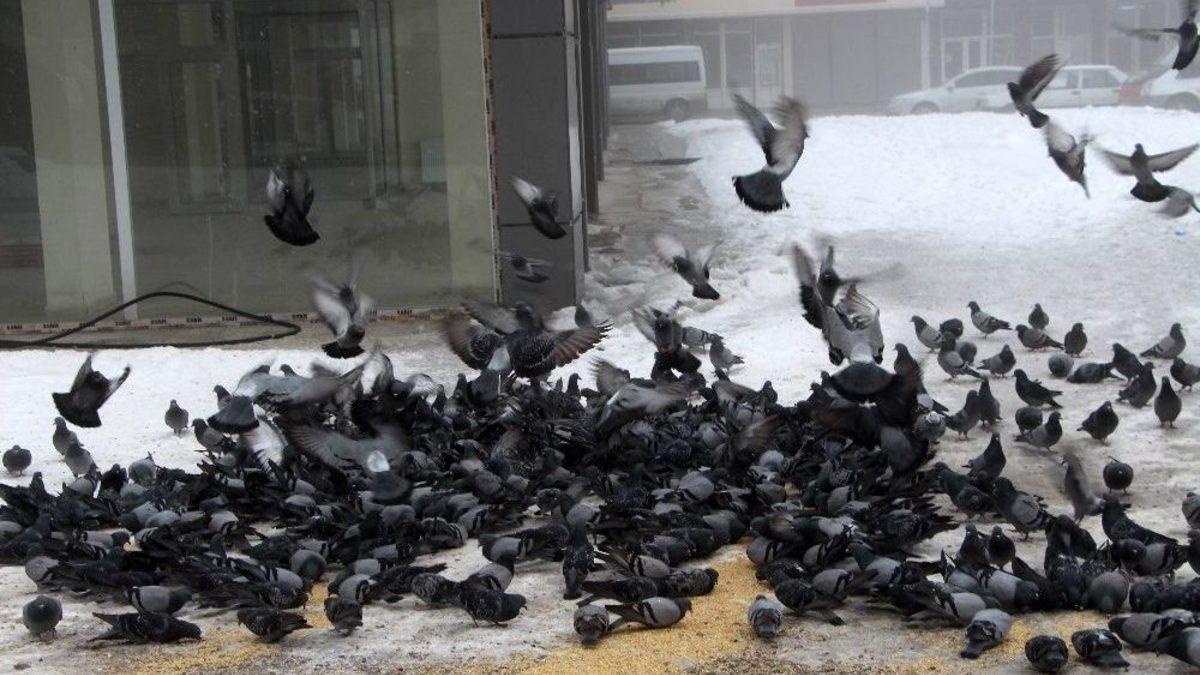 Türkiye’nin en soğuk illerinden olan Ardahan’da, soğuk hava ve kar yağışı nedeniyle yiyecek bulmakta güçlük çeken güvercinler için esnaf yem bıraktı.Kış aylarında, Sibirya soğuklarının hüküm sürdüğü Ardahan’da yaşamla mücadele zorlaştı. Kentte etkili olan olumsuz hava koşullarında aç kalan Güvercinlere duyarlı vatandaşlar sabah ve akşamları yem vererek herkese örnek oldu.Kaptanpaşa Mahallesi Hal Caddesi’ndeki esnaf İsmail Çelik, Her gün kuşlara yem verdiklerini söyledi.Kış şartlarında hayvanların yiyecek bulmakta zorlandığını söyleyen esnaf Özgür Açıkyıldız da yıllardır güvercinleri beslediğini ifade ederek, "Biz Ardahanlı esnaflar olarak bu soğuk kış aylarında Güvercinlerin bakımlarını üstlendik. Doğanın tamamen beyaza büründüğü bu kentte kuşların yiyecek bulması çok zor. Biz burada 4-5 esnaf olarak belli miktarlarda günlük olarak güvercinlerin yiyecek ihtiyacını karşılıyoruz." şeklinde konuştu.Yüzlerce güvercinin sabah saatlerinde kendilerine yem atan esnafı, binaların çatılarına konarak beklediği de gözleniyor.
