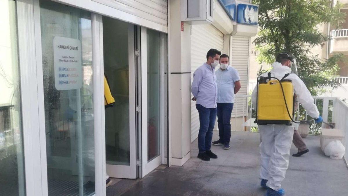 Hakkari Valiliğinin almış olduğu korona virüs tedbirleri kapsamında bankalar, kargo firmaları, işyerleri, cadde ve sokaklar, çöp konteynırları, halkın yoğun olduğu alanlar, parklar, yol kenarları belediye korona virüs timi tarafından büyük bir titizlikle dezenfekten edildi. Kent genelinde başlatılan hijyen seferberliğinde memnun olduklarını belirten vatandaşlar, su çalışmalardan dolayı belediye ekiplerine teşekkür ettiler.