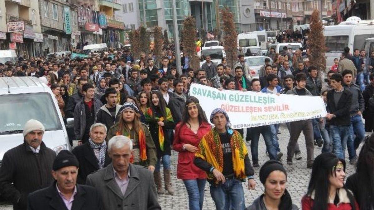 Barış ve Demokrasi Partisi (BDP) Hakkari İl Başkanlığı tarafından Mezran Mahallesi’ndeki toprak sahada yapılan kutlamalarda, alana giriş yapanları polis tek tek üst aramasından geçirerek içeri aldı. BDP Eş Başkanı Gülten Kışanak, BDP Hakkari milletvekilleri Adil Kurt ve Esat Canan, Hakkari Belediye Başkanı Fadıl Bedirhanoığlu, Çukurca Belediye Başkanı Mehmet Kanar, Yüksekova Belediye Başkanı Ercan Bora, Şemdinli Belediye Başkanı Sedat Töre, BDP Hakkari İl Başkanı Rahmi Kurt, BDP Merkez İlçe Başkanı Yavuz Aksaç ile yurt dışından gelen üniversite öğrencilerinin de aralarında bulunduğu binlerce kişi Bulvar Caddesi üzerinde bulunan belediye binası önünden yürüyerek kutlamaların yapıldığı alana geldiler.