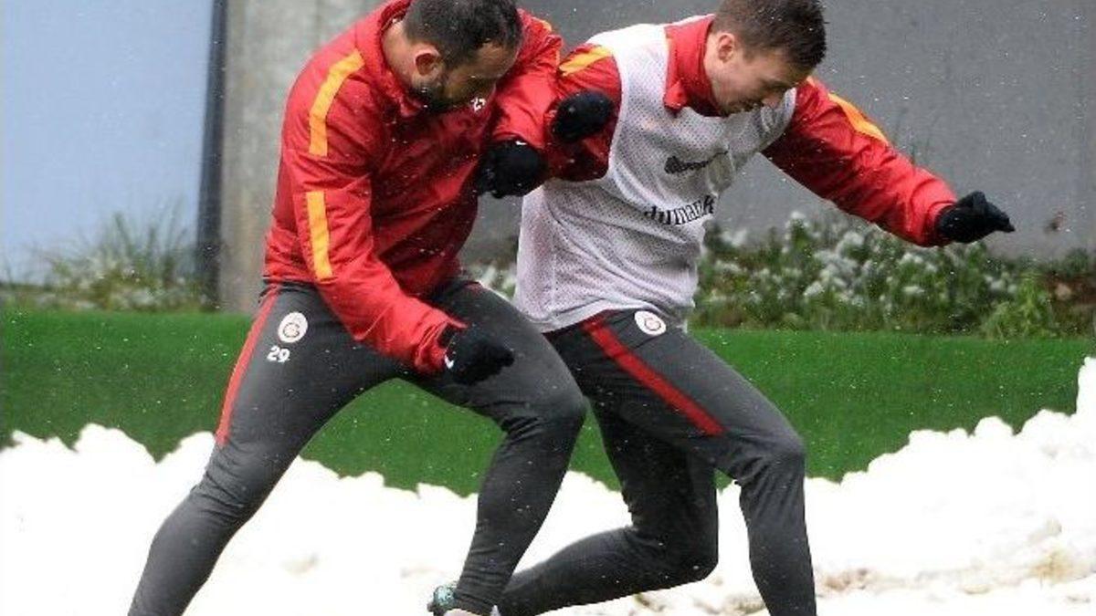 Galatasaray’da uzun süredir sakatlığı sebebiyle formasından uzak kalan tecrübeli oyuncu Hamit Altıntop, bugün yapılan antrenmanın tamamında takımla birlikte çalıştı.Galatasaray, Ziraat Türkiye Kupası’nda Akhisar Belediyespor ve Spor Toto Süper Lig’de ise Osmanlıspor ile oynayacağı maçlar öncesinde bu sabah bir antrenman gerçekleştirdi. Florya Metin Oktay Tesisleri’nde Teknik Direktör Mustafa Denizli yönetimindeki antrenman, ısınma ve koordinasyon hareketleri ile başladı. Ardından topla serbest koordinasyon hareketleri yapan sarı-kırmızılı oyuncular, iki takım halinde 10’a 10 tempolu pas çalışması gerçekleştirdi. Antrenmanın ana bölümünde taktik ağırlıklı ve baskıya dayalı 6’ya 6 sonuçlandırma çalışması yapıldı. Toplam 80 dakika süren antrenman, soğuma hareketlerinin ardından tamamlandı.HAMİT ALTINTOP TAKIMA DÖNDÜSarı-kırmızılı takımda geçirdiği ameliyat sonrası uzun süredir formasından ayrı kalan ve özel bir program dahilinde çalışan tecrübeli oyuncu Hamit Altıntop, bugün yapılan antrenmanın tamamında takımla birlikte çalışmalara katıldı.Uruguaylı kaleci Fernando Muslera ve Hollandalı yıldız Wesley Sneijder de takımdan ayrı rejenerasyon çalışması yaptı.Galatasaray, Ziraat Türkiye Kupası’nda Akhisar Belediyespor ile yarın saat 20.45’te deplasmanda oynayacağı maç için saat 12.00’de Türk Hava Yolları’na ait özel bir uçuşa İzmir’e gidecek.