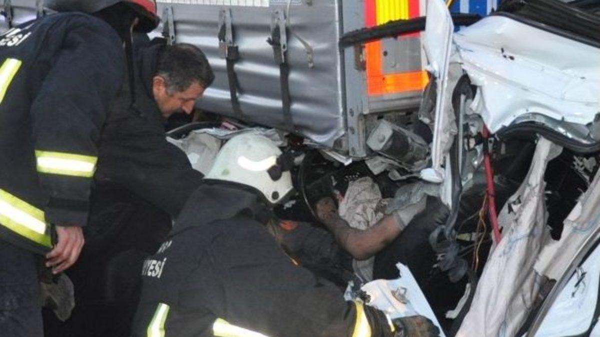 Bursa-Ankara karayolu üzeri İnegöl girişi mevkiinde meydana gelen kazada, yol kenarında park halindeki TIR’a arkadan çarpan özel otomobil hurdaya dönerken, sıkışan sürücünün hayatını hava yastıkları kurtardı.Sabah saat 05.30 sıralarında meydana gelen kazada, 34 GY 8526 plakalı özel otomobil ile Bursa’dan Ankara istikametine seyir halinde olan sürücü 27 yaşındaki Mustafa Özdoğru, Bursa’nın İnegöl ilçesi girişinde direksiyon hakimiyetini kaybetti. Otomobil, yolun sağında park halinde bulunan sürücü Ali İhsan Bosnalı yönetimindeki 35 PLE 14 çekici, 35 PGD 46 dorse plakalı TIR’a arkadan çarptı.Şiddetli çarpma sonucu özel otomobilin büyük bir kısmı TIR’ın altına girerek hurdaya dönerken, kaza sırasında açılan hava yastıkları sürücünün yan koltuğu yatmasını ve böylece hayatının kurtulmasını sağladı.İTFAİYE KURTARDIKaza yerine sağlık ve itfaiye ekipleri sevk edilirken, TIR’ın altına giren özel otomobilin ön koltuklarında sıkışan sürücüyü kurtarabilmek için zamanla yarış başladı. Bursa Büyükşehir Belediyesi İtfaiyesi İnegöl Grup Amirliği Arama Kurtarma ekibi, kurtarıcının TIR’ın arkasını havaya kaldırıp demir kesme makineleri ile aracın kapısını keserek sürücüyü kurtardı. Ağır yaralı sürücü, kaza yerinde hazır bekleyen 112 Acil Servis Ambulansında görevli sağlık ekibinin ilk müdahalesinin ardından İnegöl Devlet Hastanesi Acil Servisine kaldırılarak tedavi altına alındı. Solunum cihazının desteği ile nefes alabilen genç sürücünün hayati tehlikesi devam ediyor.Yaralının sıkıştığı yerden çıkarılmasının ardından hurdaya dönen özel otomobil, kurtarıcı vasıtasıyla çekildi.