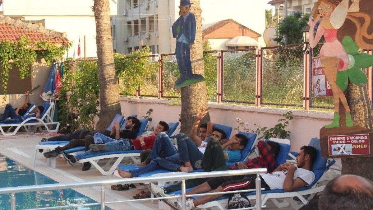 Antalya’nın Manavgat ilçesinde bir otele baskın düzenleyen Jandarma, Suriye uyruklu 62 kişiyi havuz başında ve otelin lobisinde dinlenirken yakaladı. Olayla ilgili otel sahibi ve Suriye uyruklu iki kişi gözaltına alındı.istihbarat çalışması sonucunda Manavgat Side Bölgesinde bulunan apart otelde Suriyelilerin bulunduğunu belirleyen Manavgat İlçe Jandarma Komutanlığı ile Antalya Kaçakçılık Şube Müdürlüğü ekipleri otelde arama yaptı. Apart otelde yasa dışı yollarla Kıbrıs Rum Yönetimine gitmek isteyen 42 Erkek, 13 kadın ve 7 çocuktan oluşan 62 Suriye Vatandaşı ile Suriyelileri Mersin’de toplayan Suriye Uyruklu Amer Khoof , Ahmed Mossaagha , apart otel işletmecisi O.E yakalanarak gözaltına alındı.Yasa dışı yollarla Kıbrıs Rum kesimine gitmek isteyen 62 Suriye Uyruklu şahıs Jandarma tarafından yaklaşık 12 saat süren işlemlerin ardından otobüsle Mersin’e geri gönderildi.Apart otel işletmecisine Kimlik Bildirim Sistemine otelde konaklayanların ismini bildirmediği için 5 bin 191 TL para cezası uygulanırken yakalanan şüphelilerin Jandarmadaki sorgularının ardından Manavgat Adliyesine sevk edileceği bildirildi.