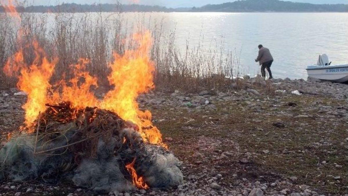 Beyşehir Gölünde denetimlerde ele geçirilen hayalet ağlar yakılarak imha edildi.Beyşehir İlçe Gıda Tarım ve Hayvancılık Müdürlüğü’ne bağlı su ürünleri koruma ve kontrol ekipleri, 2014 yılının 11 aylık döneminde Beyşehir Gölü’nde avlanmada kullanımı yasaklanan 52 kilometre uzunluğunda misina ağ ele geçirdi. Ağlar ekipler tarafından ateşe verilerek yakıldı.Beyşehir İlçe Gıda Tarım ve Hayvancılık Müdürü Nurettin Karşıyaka, gölün derinliklerinde çevre kirliliğine yol açtığı gibi küçük göz açıklığına sahip olduğu için büyüme dönemindeki yavru balıkların da avlanmasına imkan sağlayan misina ağların geçen yıllarda Bakanlık tarafından hem denizlerde hem de iç sularda ve göllerde kullanımının yasaklandığını hatırlattı.Yasağın başlamasının ardından Beyşehir Gölü’nde bu tür ağlar ile su ürünlerinin avlanmasına geçit vermemek için yoğun gayret gösterdiklerini kaydeden Karşıyaka, “Bu konuda denetim ve kontrolleri Beyşehir Kaymakamlığı’nın da ilave ettiği bir tekneyi de dahil ederek 3 koruma kontrol teknesiyle sürdürüyoruz. Ağları gölden toplayarak balıkların da üreyip çoğalmasına imkan sağlıyoruz. 11 aylık dönemde 52 bin metre misina ağın yanı sıra yine kullanımı yasak olan iki ığrıp ile bir basma ağ ele geçirdik. Vatandaşlardan yasa dışı avlanan balıkçıların görülmesi halinde İlçe Gıda Tarım ve Hayvancılık Müdürlüğü ya da Jandarma ekiplerine haber vermelerini istiyoruz. Yasak dönemin yanı sıra serbest dönemde de göldeki avlanma faaliyetlerini mercek altında tutuyoruz. Sazanda 40, levrekte 26 santimden küçük balık avlandığını ya da avda misina ağ kullanıldığı görüldüğünde haber verirlerse memnun oluruz. Çünkü göl hepimizin gölü. Buradaki balık çoğaldığında hepimize faydası olacak” dedi.