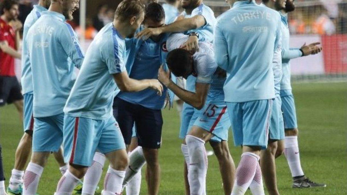 Türkiye A Milli Futbol Takımı, hazırlık maçında Karadağ ile karşı karşıya geldi. Mücadele millilerin 1-0’lık üstünlüğü ile sona erdi.MAÇTAN DAKİKALAR (MAÇ SONUCU)54. dakikada Beciraj, orta alanın sağından aldığı topla ceza alanı içerisine girdi. Sağ çaprazdan yaptığı sert şutu kaleci Volkan Babacan kornere çeldi.55. dakikada kazanılan köşe vuruşunda topun başına geçen Marko Vesovic’in uzak direğe yaptığı ortada Nikola Vukcevic’in altı pas üzerine çevirdiği topta Aleksandar Sofranac’in kafa vuruşu kalenin üzerinden auta gitti.59. dakikada Arda’nın orta alandan savunmanın arkasına attığı pasta topla buluşan Burak Yılmaz’ın vuruşu kalenin üstünden dışarıya gitti.68. dakikada Caner’in soldan ceza alanı altı pas içerisine yaptığı ortada arka direkte bulunan Ozan Tufan istediği vuruşu yapamayınca A Milli Takım mutlak golden oldu.84. dakikada kazanılan serbest vuruşta Arda Turan’ın penaltı noktasına attığı topta Ahmet Çalık’ın yaptığı kafa vuruşu üstten dışarıya çıktı.86. dakikada sol çaprazdan Arda Turan ile ver kaça giren Emre Mor, ceza alanı içerisi sol çaprazdan yaptığı sert vuruşu kaleci Poleksic kornere çeldi.88. dakikada İsmail Köybaşı’nın altı pasa yaptığı ortada Burak Yılmaz boş pozisyonda topa istediği gibi vuramayınca meşin yuvarlak üstten dışarıya çıktı.90+4. dakikada Arda Turan’ın sol kanattan ceza alanı içerisine yaptığı ortada penaltı noktasında kafa vuruşunu yapan Mehmet Topal’ın topuna kaleci Poleksic müdahale etmesine rağmen meşin yuvarlak ağlara gitti. 1-0STAT: Antalya ArenaHAKEMLER: Daniel Siebert xx, Holger Henschel xx, Jan Siedel xxTÜRKİYE: Volkan Babacan xx, Şener Özbayraklı xx, Ahmet Çalık xx, Mehmet Topal xx, Caner Erkin xx (İsmail Köybaşı dk. 72 xx), Ozan Tufan xx (Alper dk. 83 x), Oğuzhan Özyakup xx (Nuri Şahin dk. 58 xx), Hakan Çalhanoğlu xx (Burak Yılmaz dk. 58 xx), Volkan Şen xx (Emre Mor dk. 46 xx), Arda Turan xx, Cenk Tosun x (Yunus Mallı dk. 70 xx)YEDEKLER: Onur, Harun, Semih, Hakan Balta, Serdar Aziz, Selçuk İnan, Gökhan Töre, Mevüt Erdinç, Olcay Şahan, Yasin Öztekin, Çağlar Söyüncü, Mahmut Tekdemir, Ali Şaşal VuralTEKNİK DİREKTÖR: Fatih TerimKARADAĞ: Vusakin Poleksic xx, Nikola Vukcevic xx, Zarko Tomasevic x, Marko Vesovic x (Zverotic dk. 78 x), Stefan Mugosa x (Jankovic dk. 64 x), Fatos Beciraj xx, Mladen Kascelan x (Scekic dk. 12 xx (Kosovic dk. 83 x), Filip Stojkovic xx, Marko Simic x(Mijuskovc Dk. 22 xx), Vladimir Jovovic x (Klimenta dk. 75 x), Aleksandar Sofranac xxYEDEKLER: Mijatovic, Volkov, Savicevic, Zoric, Kojasevic, RaicevicTEKNİK DİREKTÖR: Ljubisa TumbakovicGOL: Mehmet Topal (dk. 90+4) (Türkiye)SARI KART: Fatos Beciraj (Karadağ)