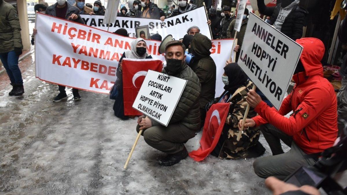Hakkari’de terör örgütü PKK tarafından çocukları dağa kaçırılan aileler, HDP il binası önünde 3’üncü kez basın açıklaması ve oturma eylemi yaparken, partililer ise annelerin sesini bastırmak için hoparlörden seçim müziği çalması tepkiye neden oldu.Çocukları terör örgütü PKK tarafından dağa kaçırılan ailelerin Diyarbakır’da başlattığı eylemin ardından Hakkari’deki aileler de üçüncü defa HDP il binası önünde eylem yaptı.