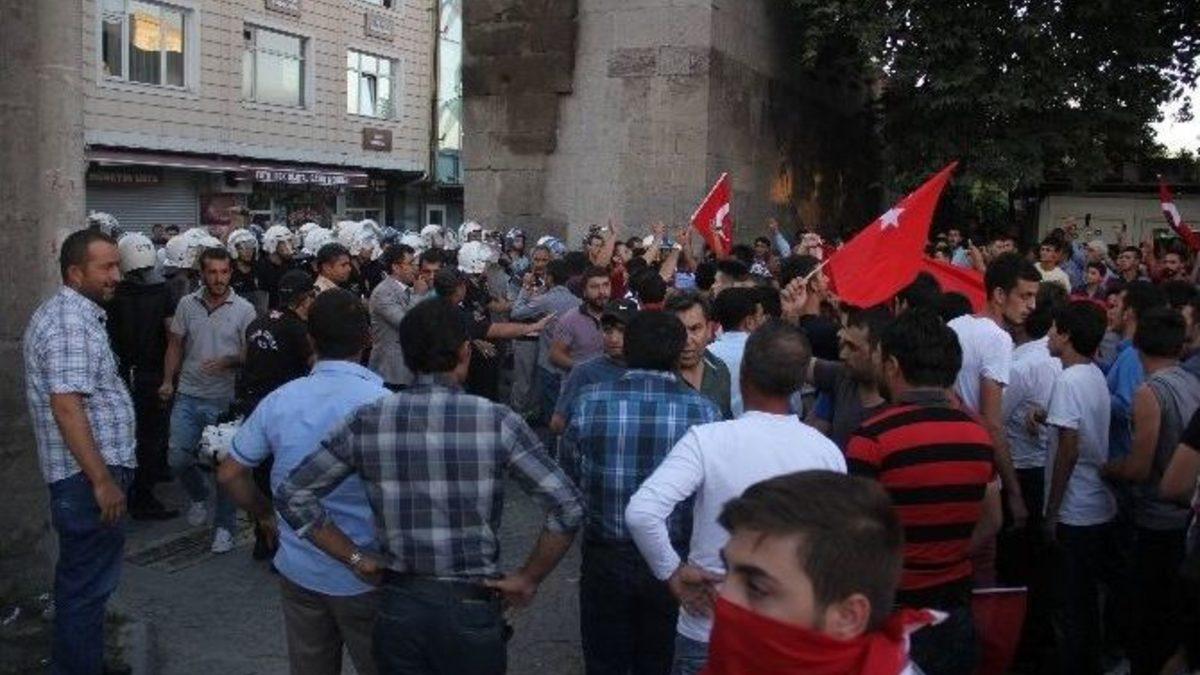 Kayseri’de şehitler için düzenlenen yürüyüşün ardından Halkların Demokratik Partisi (HDP) İl Başkanlığı’na yürümek isteyen gruba, polis biber gazı ile müdahale etti.Kayseri’de Forum Kayseri önünde toplanan yaklaşık 200 kişi, sloganlar atarak kent meydanına yürüdü. ‘Şehitler ölmez, vatan bölünmez’ ve ‘Kahrolsun PKK’ sloganları atan grup, daha sonra Kartal Şehitliği’ne yürüdü. Burada şehitler için dua eden grup, tekrar kent meydanına doğru yürüyüşe geçti. Yürüyüş sırasında bir grup HDP Kayseri İl Binası’na yürümek istedi. Binanın girişinde güvenlik önlemi alan güvenlik güçleri grubun geçişine izin vermeyince arbede çıtı. Çıkan arbede sonunda polis biber gazıyla grubu dağıtmaya çalıştı. Bir süre daha süren arbedenin ardından grup İstiklal Marşı’nı okuyarak dağıldı.