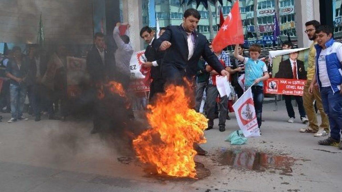 Hak ve Eşitlik Partisi (HEPAR) Erzurum İl Başkanı Yusuf Özkan, Diyarbakır’da Türk bayrağının indirilmesini protesto etmek amacıyla terör örgütünün sözde bayrağını yakmak isterken kendini yaktı.HEPAR Erzurum İl Başkanlığı’nca, Diyarbakır Lice’de Türk bayrağının indirilmesi yürüyüş yapılarak protesto edildi. Yaklaşık 15 kişinin katıldığı yürüyüş parti binasında başlayıp Cumhuriyet Caddesi’nde son buldu. Yürüyüşün ardından HEPAR Erzurum İl Başkanı Yusuf Özkan, basın açıklaması yaptı. Basın açılmasından sonra partililer yanlarında getirdiği sözde terör örgütü bayrağını benzin dökerek yaktı.Partililer slogan atarak bayrağın yanmasını izlerken İl Başkanı Yusuf Özkan, yanan flamayı çiğnemek isterken birden ceketi ve pantolonun alev almasıyla alevlerin arasında kaldı.Çevredekilerin yardımı sonucunda ateşin içinden çekilerek kurtarılan İl Başkanı Yusuf Özkan, hafif yanıklarla olayı atlattı.Öte yandan; İl Başkanının yandığını gören bazı vatandaşların 'yuvarlayın' sözcüğü çevredekiler tarafından gülerek karşılandı.