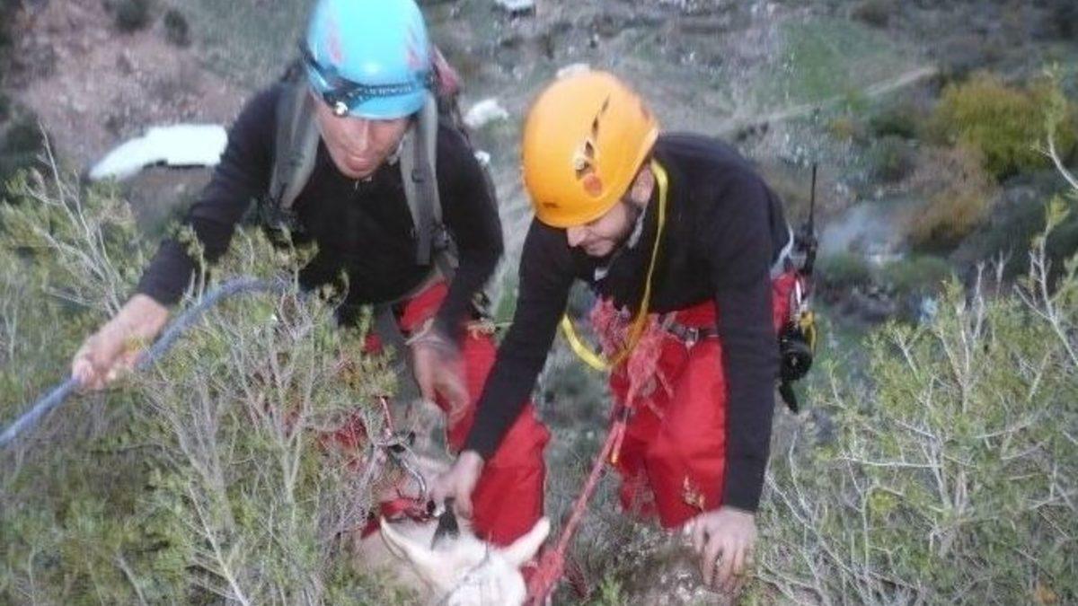 Denizli’de, 150 metrelik kayalıklarda mahsur kalan iki keçiyi, AKUT ekipleri nefes kesen operasyonla kurtardı.AKUT Denizli ekibi, Bekilli ilçesinde iki keçinin kayalıklarda mahsur kaldığı ihbarını aldı. Mustafa Etiman liderliğinde oluşturulan 9 kişilik ekip, yardım çağrısının ardından kurtarma ekipmanlarını hazırlayarak Bekilli’ye gitti. Keçilerin mahsur kaldığı kayalıklara ulaşan AKUT ekibi, çevre kontrolünü yaptıktan sonra kurtarma operasyonunun detaylarını tartıştı. Güvenlik önlemlerinin alınmasının ardından teknik malzeme kullanarak kayalıklardan aşağı inmeye çalışan AKUT Denizli üyeleri uzun süre keçilere ulaşmak için çaba gösterdi. Keçiyi halata ve kendisine bağlayan AKUT üyesi, keçiyle yukarı çıkarak ilk operasyonu tamamladı. Daha zor bir bölgede olan keçiyi kurtarmak için operasyona devam eden AKUT üyeleri havanın kararmasına rağmen çalışmalarına devam etti. Güvenlik önlemlerini aldıktan sonra gecenin karanlığında kayalıklardan halatla aşağı inen AKUT üyesi, güçlükle de olsa keçinin yanına ulaştı. Keçiyi yine kendisine ve halata bağlayan AKUT üyesi, keçiyi yukarı çıkarabildi.İki keçi, nefes kesen operasyonla kurtarılarak sahibine teslim edildi. Keçilerin sahibi AKUT üyelerine teşekkür etti.
