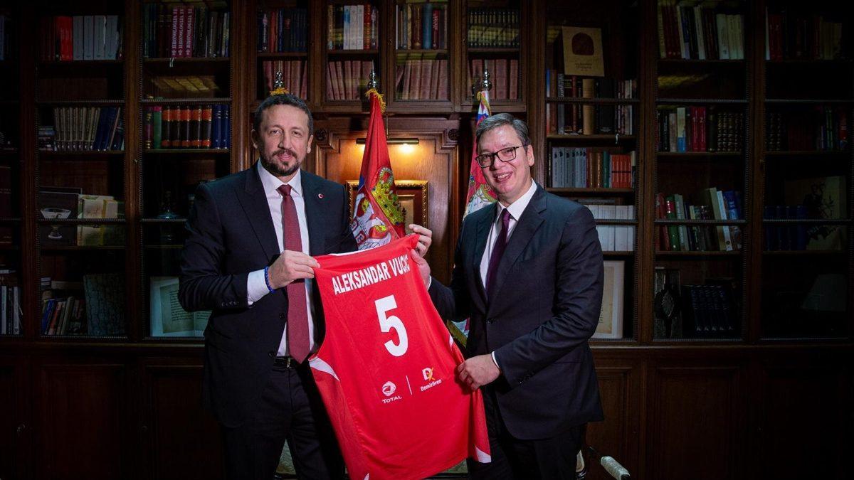 Görüşmede Türkoğlu, Sırbistan Cumhurbaşkanı'na hem 15 numaralı formasını hem de Vucic'in isminin yazılı olduğu 5 numaralı milli takım formasını hediye etti.
