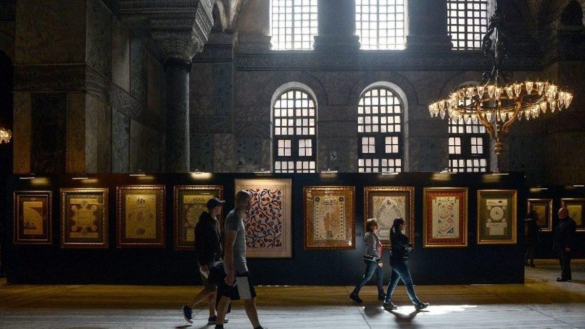 Ayasofya’da "2017 Yılı Kutlu Doğum Haftası Etkinlikleri" kapsamında gerçekleştirilen “Aşk-ı Nebi” Temalı Hilye-i Şerif Sergisi açıldı.Sergi, Diyanet İşleri Başkanlığı, Kültür ve Turizm Bakanlığı ve İslam Kültür ve Sanat Platformu tarafından Kutlu Doğum Haftası etkinlikleri kapsamında gerçekleştiriliyor. “Aşk-ı Nebi” temalı sergide 63 adet Hilye-i Şerif eser yer alıyor. Ayasofya’yı ziyaret eden yerli ve yabancı turistler, Hilye-i Şerif sergisinde yer alan eserlere büyük ilgi gösteriyor.Hilye-i Şerif sergisi 7 Mayıs tarihine kadar ziyaret edilebilecek.