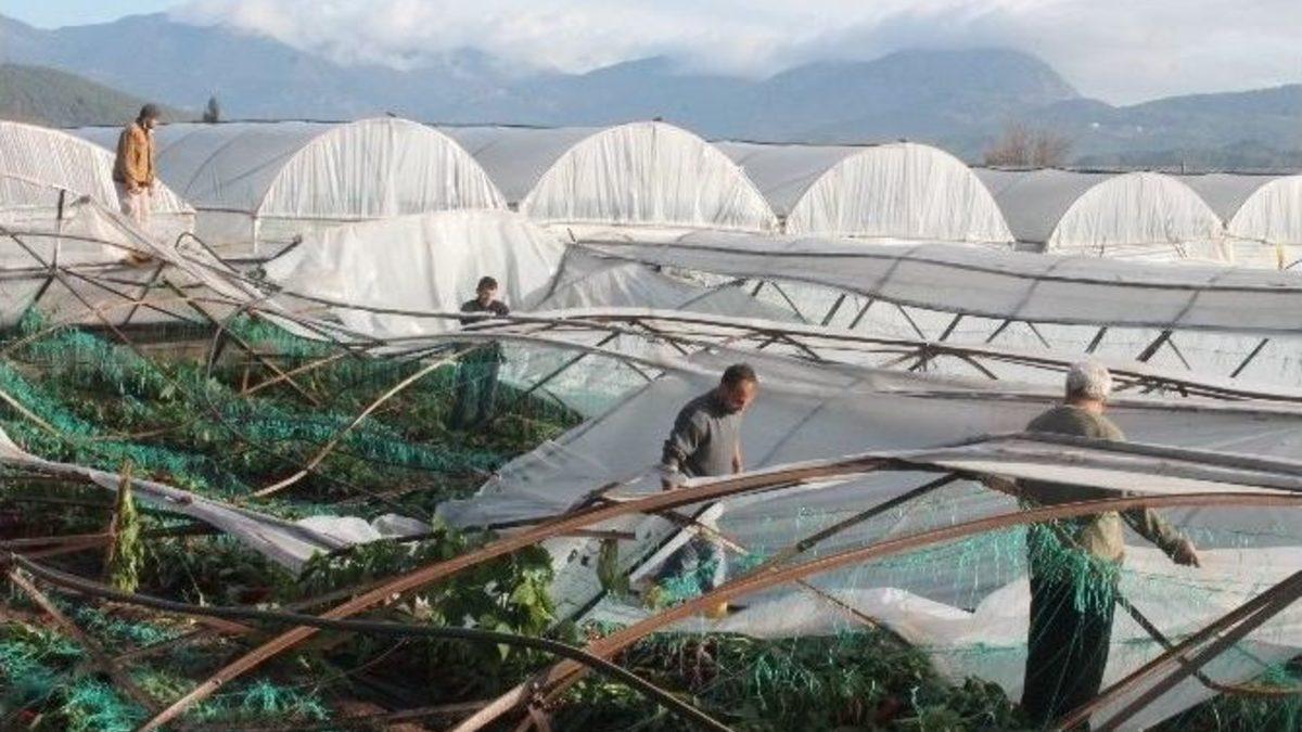 Antalya’nın Kumluca ilçesinde meydana gelen hortum yüzlerce serayı yerle bir etti.Kumluca ilçesine bağlı Kum Mahallesi Arıtma Tesisleri mevkiinden akşam saatlerinde çıkan hortum, Beykonak Mahallesi Parakumu mevkinde son buldu. Yaklaşık 5 kilometrelik uzunluğunda 50 metre genişliğinde bir alanda etkili olan hortum üreticilerin hayallerini söndürdü. İlçede aşırı yağmur ve fırtınanın ardından çıkan hortumda yüzlerce plastik ve cam sera yıkıldı.”DIŞARI BİLE ÇIKAMADIK”Hortumdan zarar gören üreticiler, bir gürültünün ardından seralarından sesler geldiğini belirterek, dışarı bile çıkamadıklarını söylediler. Emeklerinin boşa gittiğini belirten üreticiler çok üzgün olduklarını ifade ettiler.80-90 DEKAR ALANDA SERALAR YERLE BİRHortumun geçtiği alanda incelemelerde bulunan Kumluca Ziraat Odası Başkanı Süleyman Kayhan yaptığı açıklamada, “Dün akşam aşırı yağışın hortuma dönüşmesi sonucu en az 80 - 90 dekar alanda plastik ve cam sera yerle bir oldu” dedi.HASAR TESPİT ÇALIŞMALARI BAŞLADIKumluca Gıda Tarım ve Hayvancılık İlçe Müdürü Adem Aydın ise ekiplerinin hortumun zarar verdiği alanlarda incelenme yapmaya başladıklarını belirterek, “İncelemeler sonucu zararın net olarak sonucunu göreceğiz” dedi.