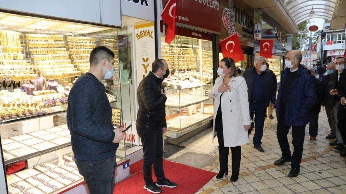 İzmit Belediye Başkanı Fatma Kaplan Hürriyet, Kapanönü ve Ayakkabılar Çarşısı’nı ziyaret ederek çalışmaları yakından inceliyor.