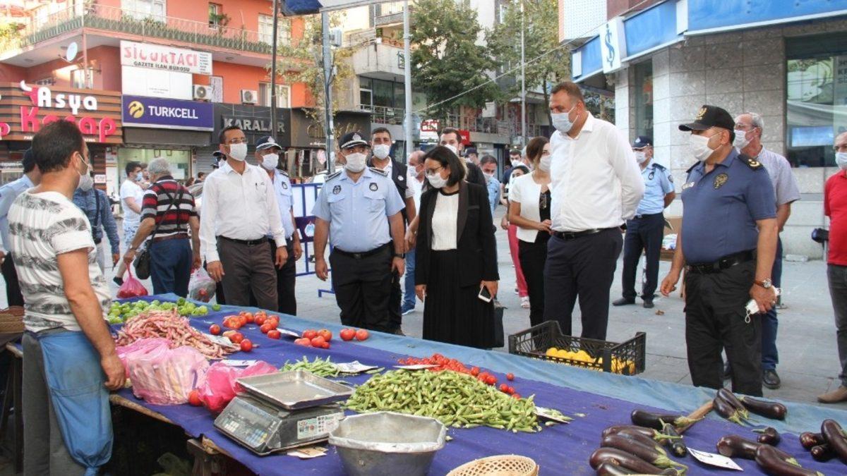 Çınar Caddesi’ndeki denetimlerini tamamlayan Kaymakam Dr. Hülya Kaya’nın son durağı ise caddenin bitimindeki semt pazarı oldu. Kaya, beraberindeki Kartal Belediyesi Zabıta Ekipleri ile birlikte pazar esnafına da bir dizi uyarılarda bulundu. Esnafın maskesini mutlaka takması gerektiği ve vatandaşların sebze-meyvelere dokunmadan alışveriş yapmaları gerektiği hatırlatılırken, genel olarak esnafın ve vatandaşların kurallara uyduğu gözlemlendi.