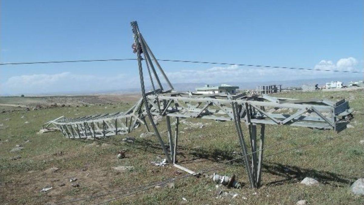 Şırnak’ın İdil ilçesinde etkili olan fırtına elektrik direklerini devirdi.