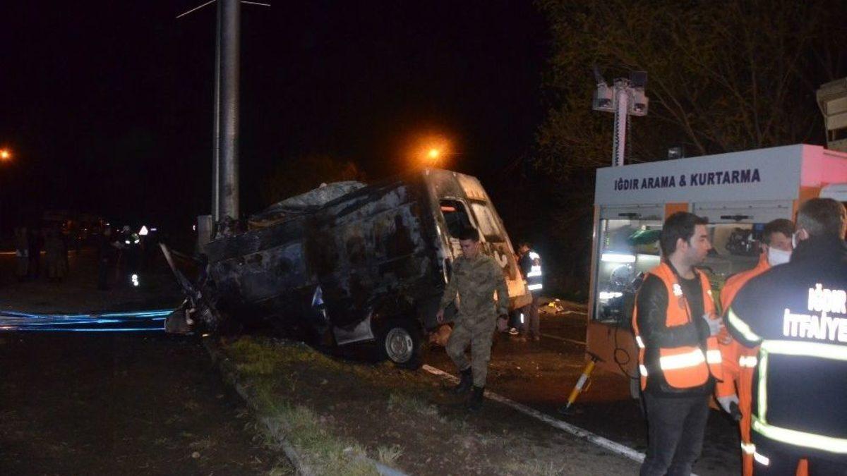 Yurda kaçak yollarla girmeye çalışan Afganistan ve Pakistan uyruklu mültecilerin bulunduğu minibüsün kaza yapması sonucu 17 kişi öldü 38 kişi yaralandı.Iğdır Tuzluca karayolu Şehit Bülent Aydın Havalimanı mevkiinde kontrolden çıkan 65 EP 701 plakalı minibüs orta refüjde bulunan elektrik direğine çarparak kaza yaptı. Çarpmanın etkisiyle alev alan minibüsün içinde bulunan yaklaşık 50 mültecinin yardımına, diğer minibüste bulunan mülteciler müdahale etti.Haber verilmesi üzerine olay yerine çok sayıda ambulans, arama kurtarma, Jandarma, Polis ve itfaiye ekibi sevk edildi. Olay yerine gelen ekipler yanan minibüse hemen müdahale etti. Alev alan minibüste bulunan mültecilerin 17’si yanarak can verirken 38 mültecide yaralandı. Yaralılar 112 Acil servis ekipleri tarafından Iğdır Devlet Hastanesine kaldırıldı.112 sağlık ekiplerine gelen ihbar sonucu olay yerine geldiğinde trafik kazasıyla ve mülteci, göçmen trajedisiyle karşılaştıklarını belirten Iğdır Valisi Enver Ünlü, “Afganistan, Pakistan ve İran uyruklu olduğunu değerlendirdiğimiz göçmen taşıyan 2 arac trafik kazasına karıştı. Öndeki araç kontrolü kaybedip refüjdeki bariyerleri geçerek elektrik direğine çarptı ve elektrik kontağından alev aldı. Alev alan minibüs içindeki sürücü ile 3 mülteci hayatını kaybetti. Bu araçtan yola savrulan diğer mülteciler de yaralandı. Yola savrulan yaralıların bir kısmına arkadan gelen diğer araç çarptı. Kazada 17 kişinin hayatını kaybettiğini şu an hastanede tedavi gören 38 yaralı var. Bunların yaklaşık 8’iameliyata alındı. Bütün doktorlarımız şu anda hastanedeler. Ağır yaralılar Erzurum, Kars ve Van’a sevk ediliyor” dediIğdır-Kars karayolu kaza nedeniyle çift şeritli olarak trafiğe kapandı. Minibüsün olay yerinden kaldırılması ve yolun yeniden ulaşıma açılması için çalışma başlatılırken, Cumhuriyet savcısı, olay yeri inceleme ekipleri bölgede inceleme yaptı.Kaçan Minibüs şoförü Mehmet Kayahan, Emniyet müdürlüğü ekiplerince yakalanarak gözaltına alınırken kazayla ilgili soruşturma başlatıldı.