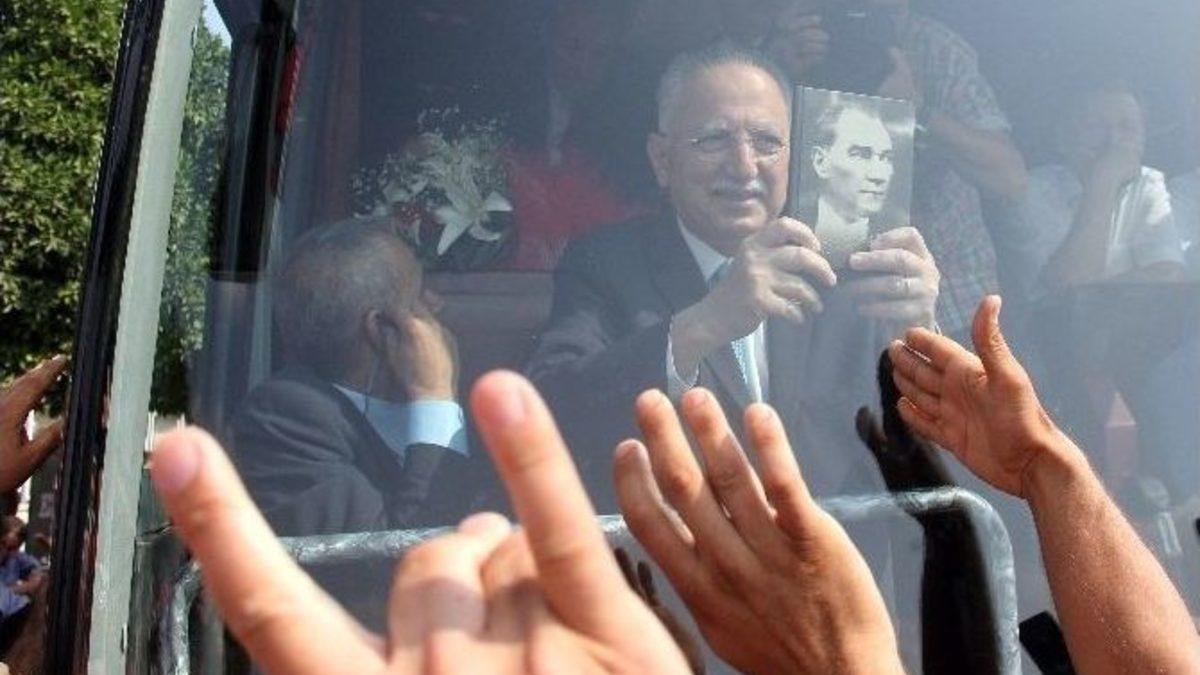 Cumhurbaşkanı adayı Ekmeleddin İhsanoğlu, Adana'da otobüsle şehir turu attı.Dün akşam Adana'ya gelen Ekmeleddin İhsanoğlu, bugünkü programına Adana Havalima'ndan başladı. Burada Adana Büyükşehir Belediye Başkanı Hüseyin Sözlü ile MHP ve CHP Adana milletvekilleri tarafından karşılanan İhsanoğlu, seçim otobüsüne çıktı. Burada bir vatandaş kendisine Atatürk'ü anlatan bir kitap hediye etti. Kitabı kalabalığa gösteren İhsanoğlu, kitabı öpüp başına götürdü.İhsanoğlu, daha sonra havalimanından ayrılarak seçim otobüsüyle Bakımyurdu Caddesi'nde şehir turu atarak vatandaşları selamladı.İhsanoğlu, Vali Mustafa Büyük'ü ziyaret etmek için geldiği Adana Valiliği önünde bir grup tarafından bozkurt işaret ve ekmeklerle karşılandı. Burada İhsanoğlu'nu görüntülemek için bir pikaba binen basın mensupları da zor anlar yaşadı.Ekmeleddin İhsanoğlu, Vali Mustafa Büyük ile basına kapalı görüştükten sonra Adana Büşükşehir Belediyesi'ne geçti.