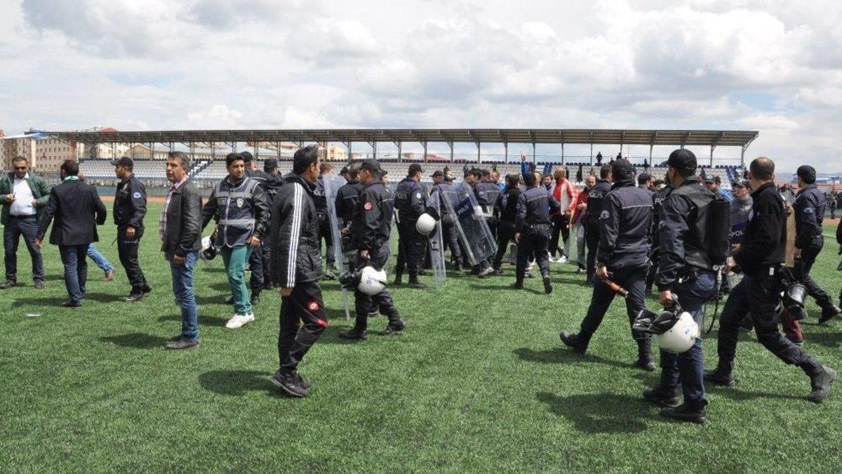 Bölgesel Amatör Lig (BAL) Ligi baraj karşılaşmasında Kars36 Spor Sarıkamış Belediyespor öncesinde iki takım sporcuları birbirine girdi. Gergin ortamda başlayan karşılaşma tamamlanmadan sona erdi.Sarıkamışlı taraftarlar, kendileri için ayrılan tribünün koltuklarını kırdı, sahaya attı. Taraftarları sakinleştirmek için polis uzun süre uğraştı.Kars Kafkas Üniversitesi (KAÜ) Prof. Dr. Abamüslüm Güven Stadı’nda oynanan Kars36 Spor Sarıkamış Belediyespor karşılaşması öncesinde sahada ısınan iki takımın sporcuları tekme tokat birbirlerine girdi. Sahada ısınan sporcuların kavgasını polis güçlükle önledi. Kavgaya taraftarlarda karışınca ortam daha da gerildi. Sahada görev alan polisler, taraftarlar ve sporcuları yatıştırdıktan sonra karşılaşma başladı.İlk yarısı 1-0 Kars36 Spor’un üstülüğüyle sona eren karşılaşmanın ikinci yarısı yağmurlu hava da oynandı. Sarıkamış Belediyespor Kars36 Spor karşısında attığı golle durumu 1-1 yaptı. Karşılaşmanın ilerleyen dakikalarda ortam iyice gerildi. Karşılaşmanın ilerleyen dakikalarında Kars36 Sporlu futbolcunun ceza sahası içerisinde düşürülmesini karşılaşmanın orta hakemi Halil Erdoğan penaltı olarak değerlendirdi. Karşılaşmanın uzatma dakikasında penaltı atışını göle çeviren yeşil beyazlı ekip 2-1 öne geçti. Bu dakikadan itibaren ortam iyice gerildi. Karşılamanın orta hakemi sporcuların darbesiyle sakatlandı. Sarıkamış Belediyesporlu futbolcular karşılamanın tamamlanmasına 2 dakika kala sahadan çekildi. Karşılaşmanın hakemi Halil Erdoğan, karşılaşmayı tatil etti. Kars36 Spor Sarıkamış Belediyespor karşılaşması evsahibi takımın 2-1 üstünlüğüyle sona erdi. Karşılaşmanın net sonucunu hafta içerisinde belli olacak.“Sarıkamışlı taraftarlar türbinlerin koltuklarını kırdı”Öte yandan Prof. Dr. Abamüslüm Güven stadyumunda oynanan karşılaşmada Sarıkamışlı taraftarlara ayrılan tribünün koltukları kırıldı. Kırılan kotluklar Sarıkamışlı taraftarlar tarafında sahaya atıldı. Sarıkamışlı teknik heyet ve yedek sporcuların oturduğu yedek kulübesi de yine sporcular tarafından tekmelerle kırıldı. Üniversiteye ait stadyumun yedek kulübesi ve misafir takım seyircilerine ayrılan tribünler kullanılmaz hale geldi.Kars36 Spor’un galibiyetini kutlamak isteyen taraftarlar ise tribünlerden aşağı atlayarak saha içerisine koştu. Bazı taraftarlar tribünlerden atlarken, çeşitli yerlerinden yaralandı.