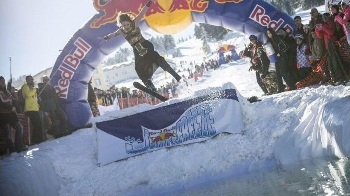 Uludağ’da Red Bull Jump and Freeze etkinlikleri kapsamında ilginç kostümler giyen yarışmacılar, 50 metrelik pistte snowboard, kayak ekipmanları, oyuncak bisiklet, kızak gibi malzemelerle sıfır derecelik suya atladı.Kış turizminin önemli merkezlerinden Uludağ’da Red Bull Jump and Freeze Uludağ Beceren Pisti’nde yapıldı. Eğlenceli yarışmada katılımcılar sadece soğuk havaya değil, buz gibi sulara meydan okudu. Kendi tasarladıkları eğlenceli kostümleri giyip karlı havada Uludağ’daki yarışmaya 26 takımdan 61 kişi katıldı. Yarışmacılar, snowboard, kayak ekipmanları, oyuncak bisiklet, kızak ve şişme bot gibi malzemelerle 50 metrelik pistte kayarak gelip sıfır derecelik suya atlamaları izleyicilere eğlenceli anlar oluşturdu. Yarışmacıların giydiği eğlenceli kıyafetler de etkinliğin şov unsurunu güçlendirdi.Yarışmacılar arasından en dikkat çekici performansı sergileyen Gökhan Sezer, Serhat Taş ve Uğur Güner’den oluşan ‘Kar Prensleri’ ekibi birinci oldu. En iyi kostüm ödülünü ise ‘Ninja Turtle’ elbisesiyle Hüseyin Can Ağdemir aldı. Yarışmacılar, Uğurkan Erez, Bilge Öztürk, Koray Candemir ve Çiçek Güney tarafından oluşan jüri tarafından değerlendirildi.