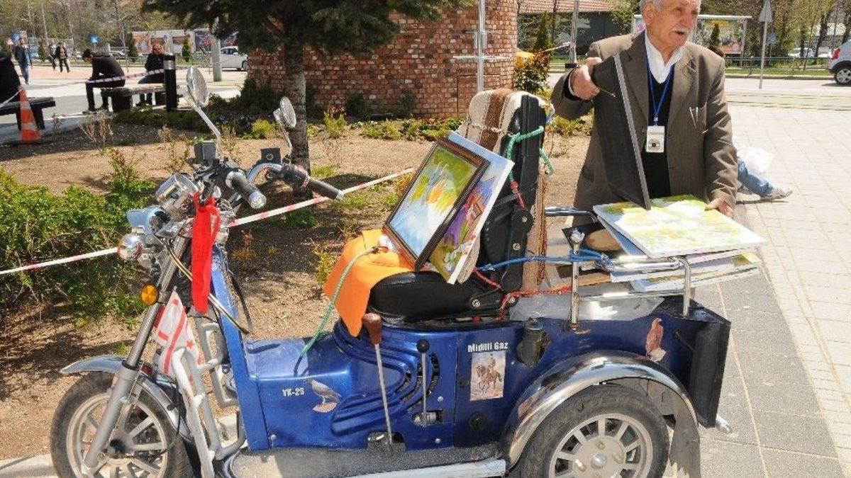 Eskişehir’de yaşayan 83 yaşındaki Ahmet Er, ilkokulda kum üzerine çizerek başladığı resim sanatını 70 yıldır sürdürüyor ve eserlerini motosikleti ile köy köy dolaşarak sergiliyor.Seyitgazili olan Ahmet Er, önceleri amatör olarak başladığı resim sanatına kısa bir süre sonra adeta kendini adadığını anlattı. Kum üzerinde başlayan, kara kalem ile devam eden Er, ardından yağlı boya ile çalışmalarını sürdürdü. 70 yılı aşkın süredir resim çizdiğini ifade eden Er, “Gezdiğim yerlerin fotoğraflarını çekiyorum. Ev içerisinde bulunan atölyemde çektiğim fotoğrafları inceler, o fotoğrafları yağlı boya ile resmederim. Daha çok manzara resimleri çiziyorum. Eskiden gördüğüm tatlı çileleri, eski yaşantıları da resmediyorum. Geçmişi resmederek geleceğe taşıyorum” dedi.İlkokuldayken kara kalem çalışmaları yapmaya başladığını belirten Er, “İlkokulu bitirdikten sonra kendimi geliştirerek, yağlı boya resimleri çizmeye başladım. Çizdiğim resimleri esnaflara, köylülere satarak geçimimi sağlamaya çalışırdım. 70 yılı aşkın süredir resim çiziyorum. Biz dersteyken yağmur yağdı. Yağmurda beraberinde kum getirdi. Kumu görünce elime geçirdiğim çubukla resim yaptım. Sonra biri gördü ve çok beğendi ve ’İstediğim bir resmi yapabilir misin?’ dedi. Ben de ’Yapabilirim’ dedim. Beni evine davet etti. Gittik. Def getirerek, ’Bunun üzerine benim istediğim gibi bir resim yapmanı istiyorum’ dedi. Ben de onun istediği gibi bir köy manzarasının resmini çizdim. Çok hoşuna gitti. Resim karşılığında para verdi. Ben de yaptığım resimleri bundan sonra satabileceğimi ve bir gelir kaynağı elde edebileceğimi düşündüm. Ömrümün sonuna kadar resim çizmeye devam edeceğim. Bir motosiklet aldım. Hafta sonları motorumla geziyor ve hoşuma giden manzaraları fotoğraflıyorum. Daha sonra yağlı boya ile resmediyorum. Resimlerimle köy köy geziyorum. Köylerdeki birçok evde resimlerim var. Motorumla köy köy gezerek resimlerimi sergileyip, satışa sunuyorum. Kimi zaman ise bazı vatandaşlara hediye ediyorum” ifadelerini kullandı.Ahmet Er’in ESPARK’taki resim sergisini gezenler arasında bulunan ve bir senedir kendisinin de bu sanatla ilgilendiğini anlatan üniversite mezunu Melike Yanbastıoğlu, “Gerçekten ben Ahmet amcaya çok imrendim. Özgüven sahibi. Girişken. Hepimiz çok seviyoruz onu. Çok güzel bir iş yapıyor. Takdir ediyorum. Bunu yapmak çok zor. Köy köy dolaşıp resimlerini tanıtıyor” şeklinde konuştu.6 aydır resim yapan 45 yaşındaki Gamze Erol, “İnanılmaz bir pozitif enerjisi var. Doğa resimleri çiziyor. 83 yaşında gibi değil. Daha genç duruyor. Hayat dolu. Ahmet amcayı seviyoruz. Resimleri de çok güzel. Büyük cesaret. Takdir edilmesi gerekiyor” diye belirtti.Emekli öğretmen Erhan Özyar ise, “Ahmet amcayı tanıdıktan sonra resim çizmeye başladım. Ahmet amca köy figürlerini hayvan figürlerini çok iyi yapıyor. Motoruyla resimlerini her yere götürmeye gayret ediyor. Resme odaklanıyor. Çizerken başka hiçbir işle ilgilenmiyor. Kimseyi duymuyor. Çok iyi motive oluyor. Öyle bir aşk” diyerek Ahmet amcanın resme olan ilgisini aşk olarak nitelendirdi.