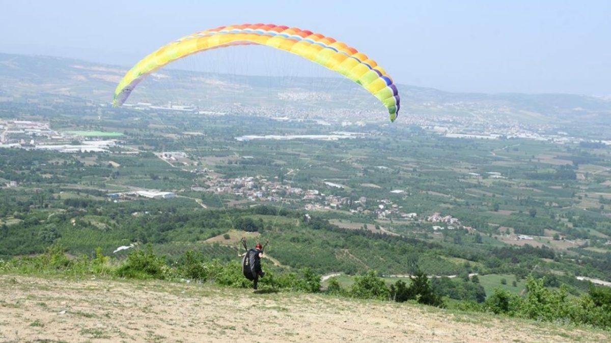 İnegöl Doğa Sporları ve Turizm Merkezi Cerrah tepesinde 19 Mayıs Atatürk’ü Anma Gençlik ve Spor Bayramı’na özel yamaç paraşütü uçuş etkinliği düzenledi.