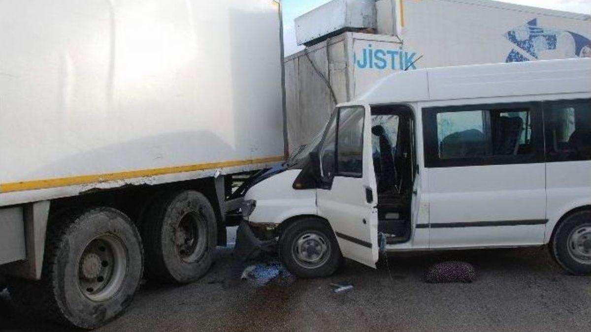Tokat’ta inşaat işçilerini taşıyan servis minibüsün TIR ile çarpışması sonucu meydana gelen kazada 8 kişi yaralandı.Kaza, Tokat-Turhal Karayolu eski Tokat Sigara Fabrikası önünde meydana geldi. Edinilen bilgiye göre, U dönüşü yapmak isteyen Adnan Yılmaz (53) idaresindeki 01 CCA 80 plakalı TIR’a, Selim Yılmaz’ın (35) kullandığı 60 BB 469 plakalı servis minibüsü yandan çarptı. Çarpmanın şiddetiyle inşaat işçilerinin bulunduğu minibüsün ön tarafında sıkışan bir işçi, Tokat Belediyesi İtfaiyesi Kurtarma ekipleri tarafından çıkarıldı. Yaralılar olay yerine sevk edilen çok sayıda ambulansla Tokat Devlet Hastanesi ile Gaziosmanpaşa Üniversitesi Tıp Fakültesi Hastanesi’ne kaldırıldı.Yaralı sayısının fazla olması nedeni ile ambulansta yer kalmayınca bir yaralı olay yerinde kısa bir süre başka bir ambulansın gelmesini bekledi. Serum ve boyunluk takılan hafif yaralı şahıs ambulansla hastaneye sevk edildi. İşçilerin sağlık durumunun iyi olduğu bildirildi.Kazayla ilgili soruşturma başlatıldı.
