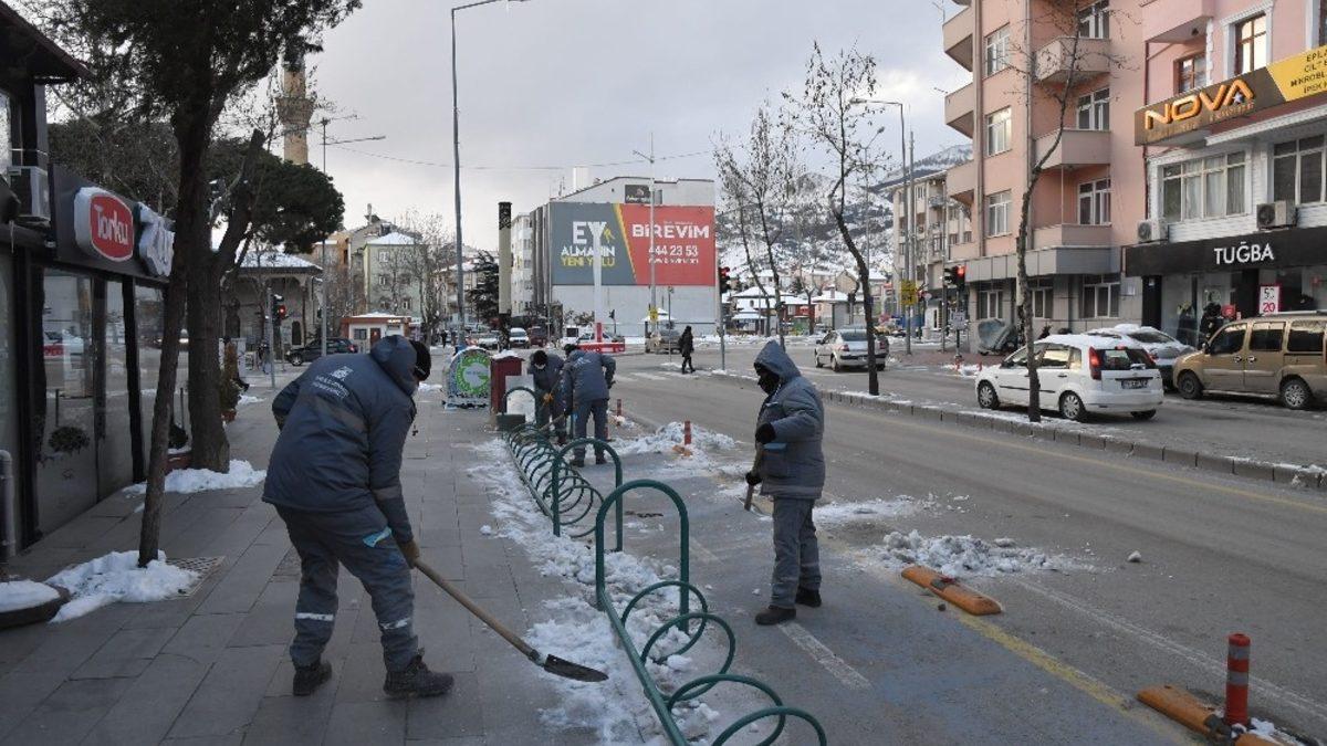 Şehirdeki karla mücadelenin ardından ekipler ayrıca kaldırım kenarlarında araç parklarından dolayı temizlenemeyen alanlarda da temizlik çalışması sürdürdü. Çalışmalarda toplanan karlar kamyonetlere yüklenerek taşındı. Belediye ekipleri ayrıca havaların eksilere düşmesi dolayısıyla güneş görmeyen ve buz tutan yollarda da tuzlama çalışmalarına devam etti. Merkezdeki çalışmalar, ara sokaklara ve kaldırımlara da taşındı. Ekipler kaldırımlarda da ince temizlik çalışmaları sürdürdü.