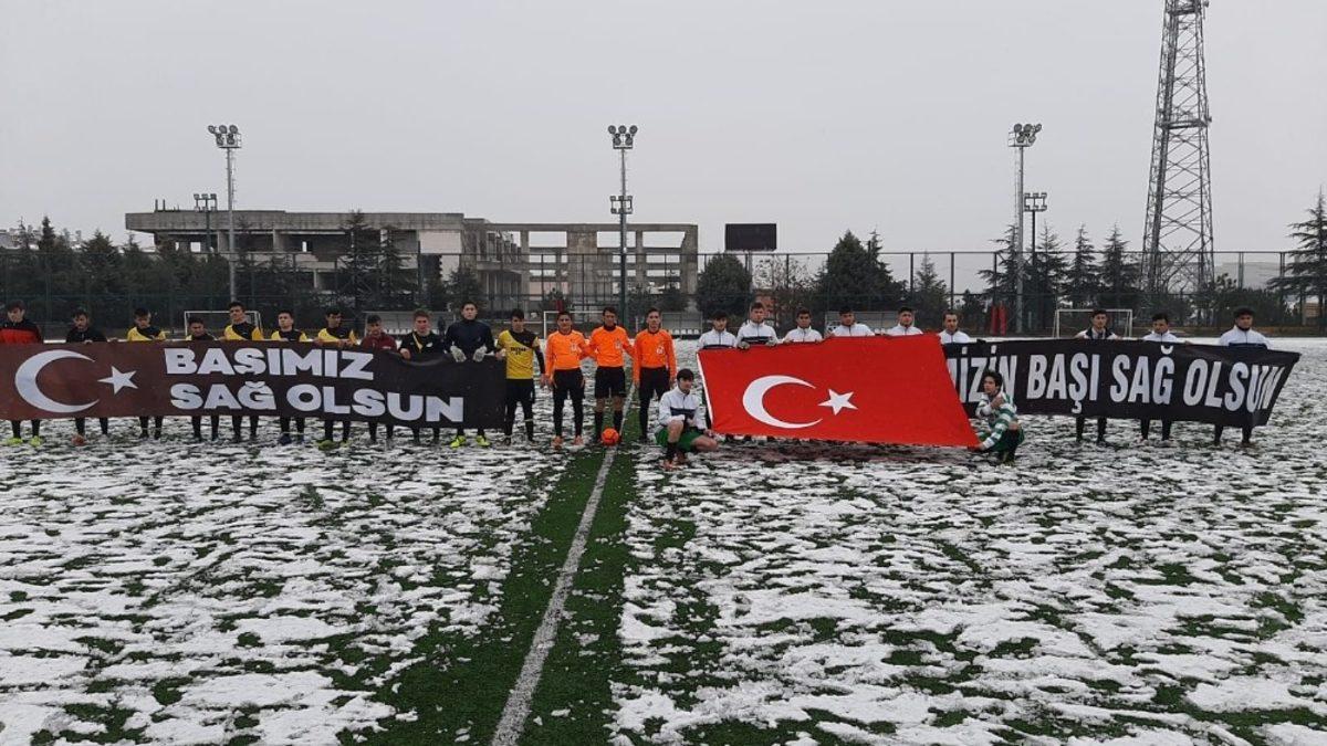 Isparta U19 Futbol Ligi’nde gençler, İdlib şehitleri için özel hazırlanan pankartla maça çıktı.