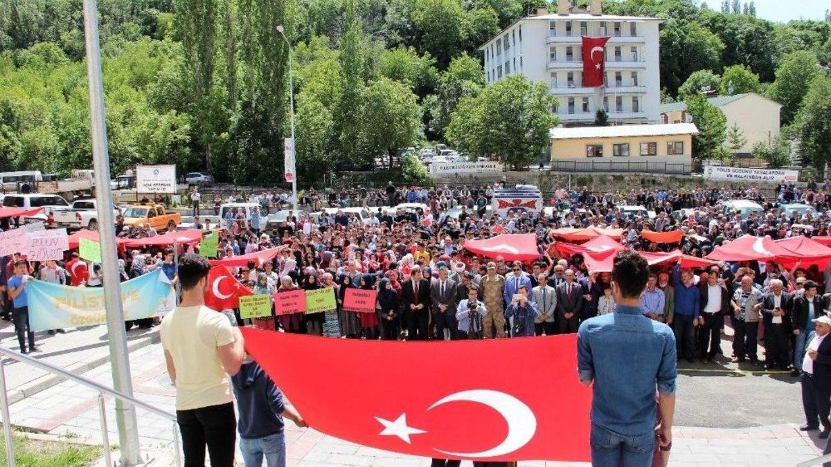 ERZURUM ( İHA ) – İsrail’in Filistin’e yaptığı saldırılar sonucunda Türkiye’nin her noktasında Filistin’e yapılan destek yürüyüşü İspir’de de yapıldı.Erzurum’un İspir İlçesi’nde vatandaşlar Filistin’e destek için Hükümet Konağı önünde toplandı. Burada bir basın açıklaması yapıldıktan sonra vatandaşlar sloganlar eşliğinde dağıldı.