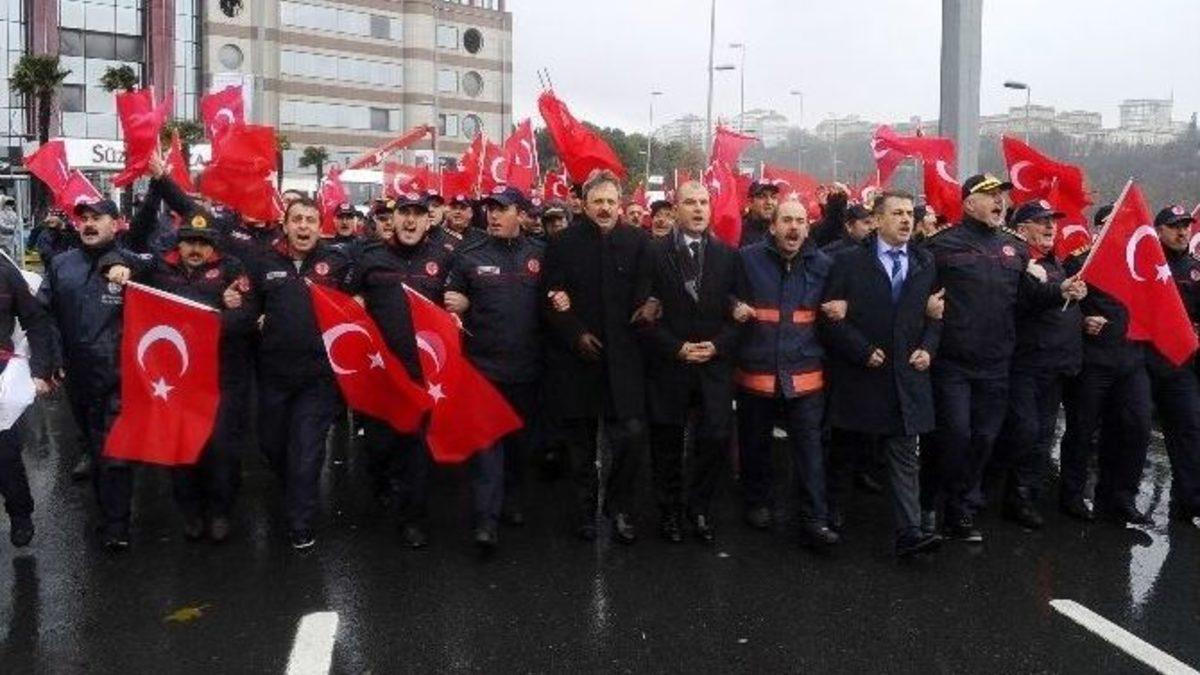İstanbul İtfaiyesi görevlileri, 10 Aralık gecesi Beşiktaş’ta terör saldırısının yaşandığı Şehitler Tepesi’ni ziyaret ederek terörü lanetledi.Beşiktaş’ta 10 Aralık gecesi meydana gelen iki ayrı bombalı terör saldırısının yaraları sarılmaya devam ediyor. Bir çok kurum, kuruluş ve vatandaş olay yerini ziyaret etmeye bugün de devam etti. Olay yerini İstanbul İtfaiyesi görevlileri de ziyaret etti. Bir itfaiye aracı ve yaklaşık 200 kişilik itfaiye eri ile birlikte Şehitler Tepesi’ne gelen İstanbul İtfaiyesi bombanın patlatıldığı yere karanfil bıraktı. Olay yerinde dua eden itfaiye erleri “Şehitler ölmez vatan bölünmez” sloganlarıyla hep bir ağızdan birlik ve beraberlik mesajları verdi. İtfaiye erleri olay yerine çiçek bırakıp dua ettikten sonra Şehitler Tepesi’nden ayrıldı.