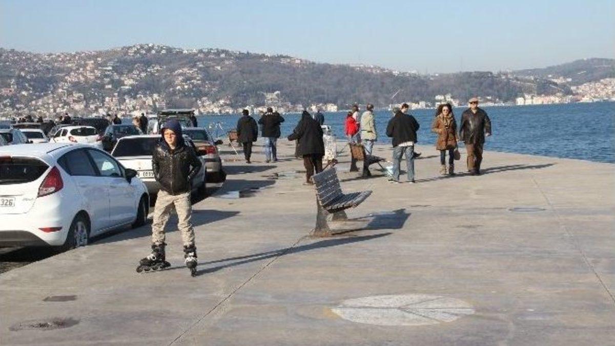 İstanbul’da kar ve soğuk havanın ardından güneş yüzünü gösterdi. Termometreler 12 dereceyi gösterince vatandaşlar soluğu boğazda aldı.Geçtiğimiz hafta kar altında kalan İstanbul’da bugün güneş yüzünü gösterdi. Güneşli bir havayla güne başlayan İstanbullular termometreler 12 dereceyi gösterince soluğu sahilde aldı. Sahile akın eden vatandaşlardan kimi balık tutarken kimisi de yürüyüş yaparak güneşli havanın tadını çıkardı. Bazı vatandaşlar ise çocuklarıyla kaykay yaptı.Güneşli havayla birlikte soluğu boğazda alan bir vatandaş, “Biraz kuru soğuk var. Güneş yüzünü gösterdi. Sahile çıktık. Kar nedeniyle hiçbir yere çıkamamıştık” dedi.Balık tutmak için sahile gelen bir vatandaş ise, “Güneş çıkınca oltalarımızı alıp balık tutmaya geldik. Şansımızı deneyeceğiz” diye konuştu.