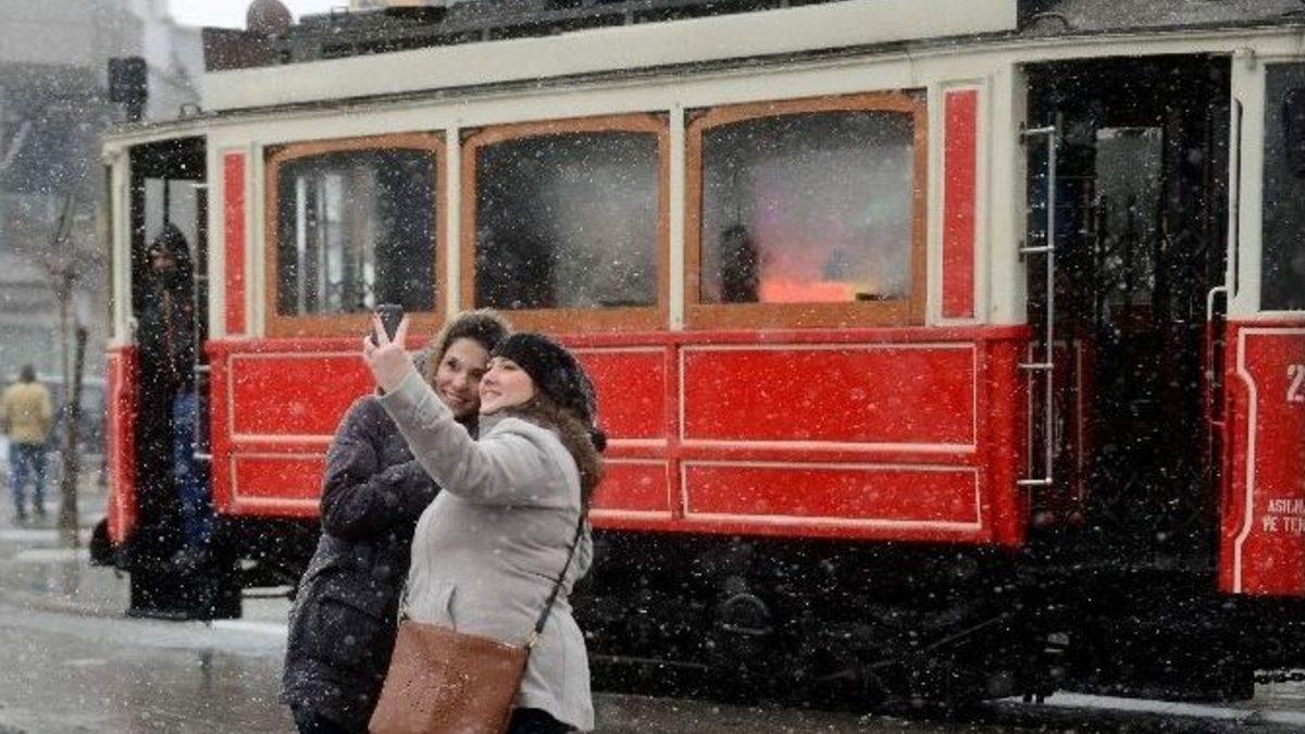 İstanbul’da başlayan kar yağışı, çeşitli noktalarda kartpostallık görüntüler oluşturdu. Bazı vatandaşlar tipi nedeniyle yürümekte zorlanırken, bazı vatandaşlar da karın yağmasını fırsat bilerek özçekim yaptı.İstanbul dün akşam saatlerinde başlayan kar yağışı, bugün de etkisini artırarak devam etti. Yoğun kar yağışının tipiye dönüşmesi nedeniyle Mecidiyeköy ve Taksim’de yürüyüşe çıkan vatandaşların bazıları yürümekte zorlandı. Bazı vatandaşlar ise karın yağmasını fırsat bilerek özçekim yaptı.Öte yandan, tipinin verdiği etkiyle çeşitli noktalarda kartpostallık görüntüler oluştu.