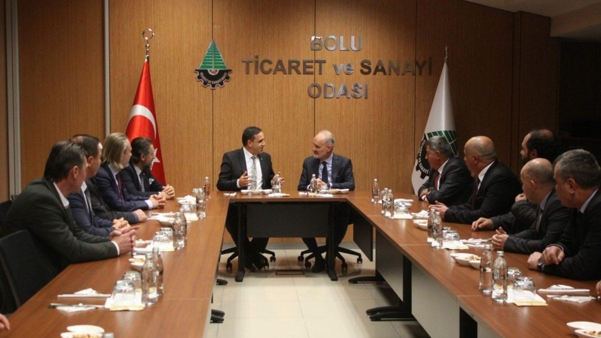 Bolu Ticaret ve Sanayi Odası Başkanı Türker Ateş ise, İTO Heyetini Bolu ve BTSO’da görmekten duyduğu memnuniyeti belirterek başladığı konuşmasında, “Bizim Yönetim Kurulumuzdaki arkadaşlarla takip ediyoruz, Türkiye’nin en büyük Odasısınız. Büyük bir Odayı ağırlamak hakikaten bizim için zor, ama sizin ne kadar mütevazi olduğunuzu, ne kadar çalışkan olduğunuzu çok iyi biliyoruz. Bundan yaklaşık 13-14 sene önce Murat Başkanım da, rahmetli İbrahim Çağlar Başkanımız da bizi ziyaret ettiler. Eski binamızda bizi ziyaret ettiler, şimdi yeni binamızdayız. Sizlere tekrar ilimize, Odamıza gösterdiğiniz ilgiden dolayı teşekkür ediyoruz. Tabi sizin sesiniz çok yüksek. Sizin icraatlarınız, sizin aldığınız kararlar hakikaten herkesi etkiliyor, memleketi etkiliyor. Dolayısıyla yolunuz ağır, işiniz ağır, yükünüz ağır. Bizler de sizlere destek olmak sizlerle beraber çalışmak bizlere keyif veriyor. Bölgemize gelmişsiniz, çalıştayınız var, oradan kopup gelmişsiniz. Bu nezaketinizden dolayı ayrıca çok teşekkür ediyoruz. Yolunuz açık olsun. Hep beraber inşallah bu memlekete saygı olarak destek vereceğiz. Memleketimizi, firmalarımızı kalkındırmak için elimizden gelen gayreti göstereceğiz” ifadelerini kullandı.